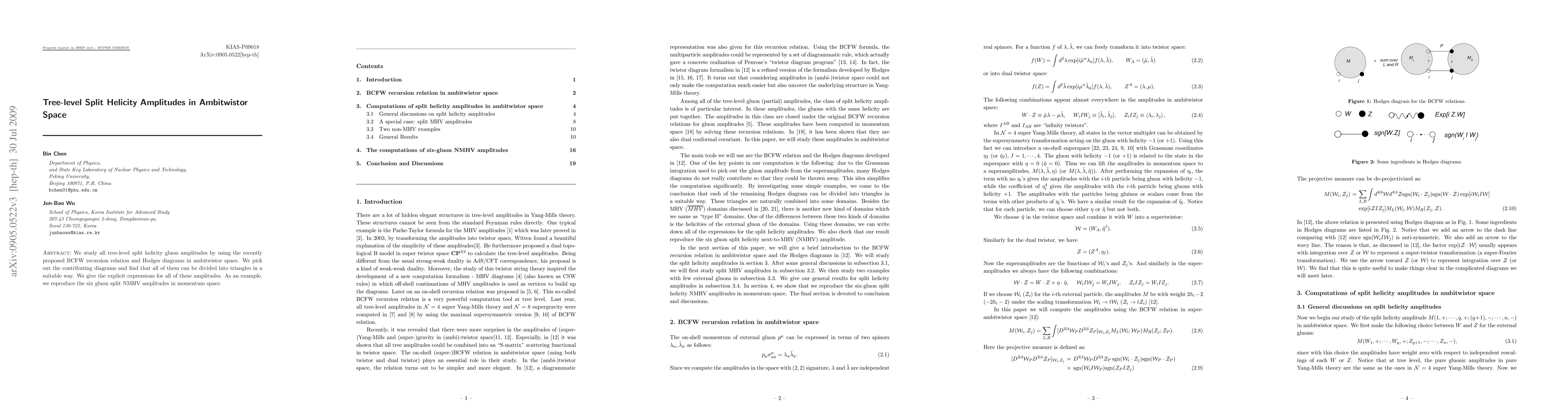 We study all tree-level split helicity gluon amplitudes by using the recently proposed BCFW recursion relation and Hodges diagrams in ambitwistor space. We pick out the contributing diagrams and find that all of them can be divided into triangles in a suitable way. We give the explicit expressions for all of these amplitudes. As an example, we reproduce the six gluon split NMHV amplitudes in momentum space.
