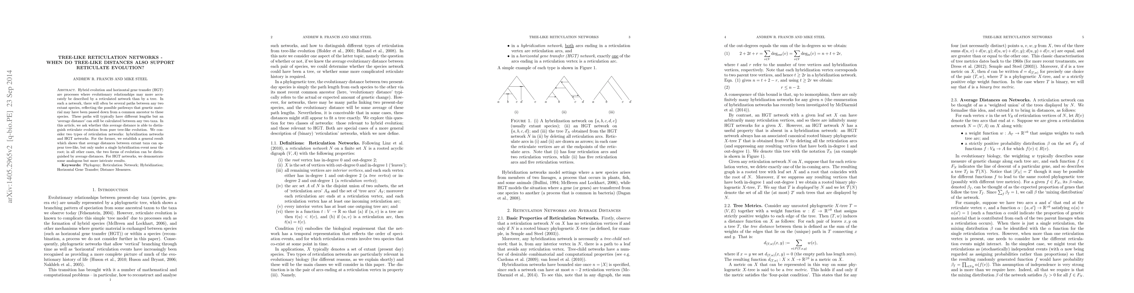 Hybrid evolution and horizontal gene transfer (HGT) are processes where evolutionary relationships may more accurately be described by a reticulated network than by a tree. In such a network, there will often be several paths between any two extant species, reflecting the possible pathways that genetic material may have been passed down from a common ancestor to these species. These paths will typically have different lengths but an `average distance' can still be calculated between any two taxa. In this article, we ask whether this average distance is able to distinguish reticulate evolution from pure tree-like evolution. We consider two types of reticulation networks: hybridization networks and HGT networks. For the former, we establish a general result which shows that average distances between extant taxa can appear tree-like, but only under a single hybridization event near the root; in all other cases, the two forms of evolution can be distinguished by average distances. For HGT networks, we demonstrate some analogous but more intricate results.