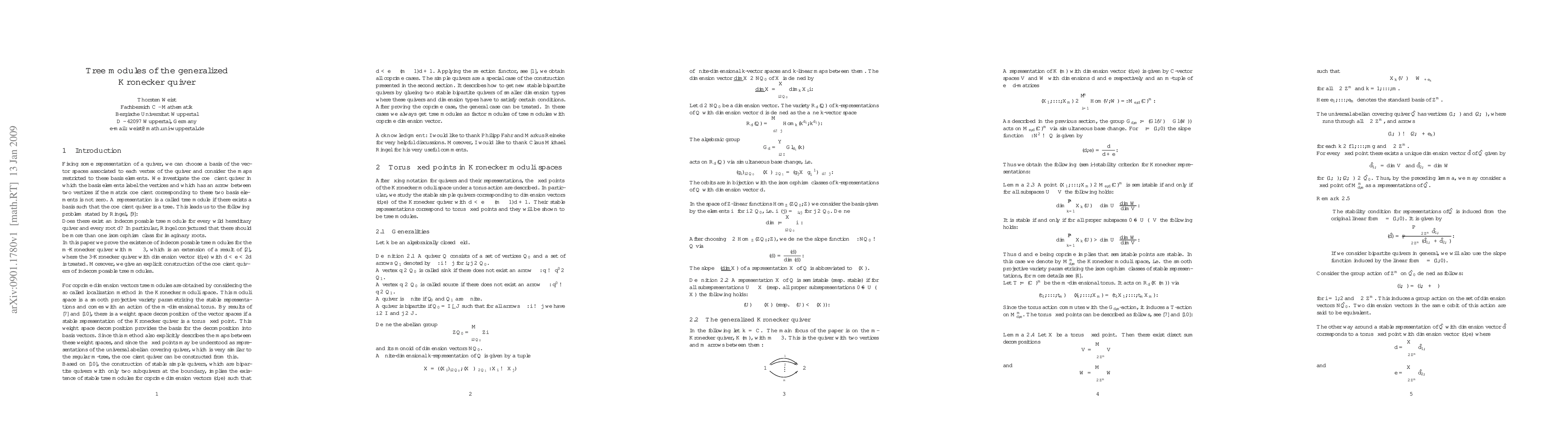 This paper investigates indecomposable tree modules of the generalized Kronecker quiver, demonstrating that they can be constructed from torus fixed points of the Kronecker moduli space for coprime dimension vectors. The authors show that these modules serve as stable building blocks for constructing stable torus fixed points and exist as factor modules for arbitrary roots.