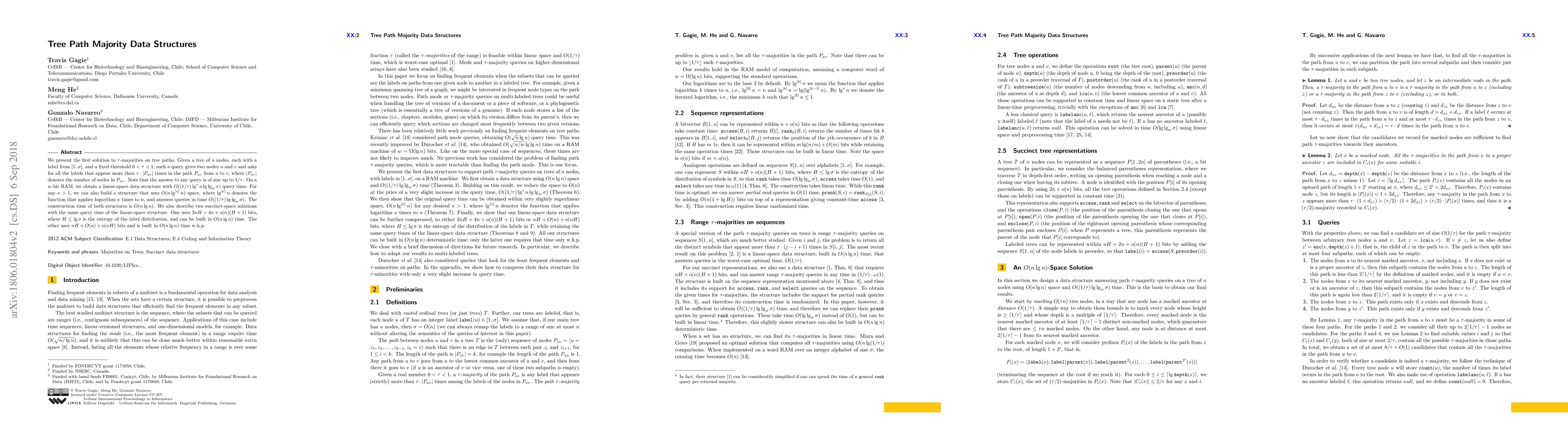 Researchers developed efficient data structures for answering specific queries on tree paths, with query times of $O((1/ au) ext{log}^* ext{n} ext{log} ext{log}_ ext{w} ext{ extsigma})$ and space complexities of $O( ext{n} ext{log}^ ext{[} ext{kappa} ext{]} ext{n})$, for tree paths with up to 1/ au queries.