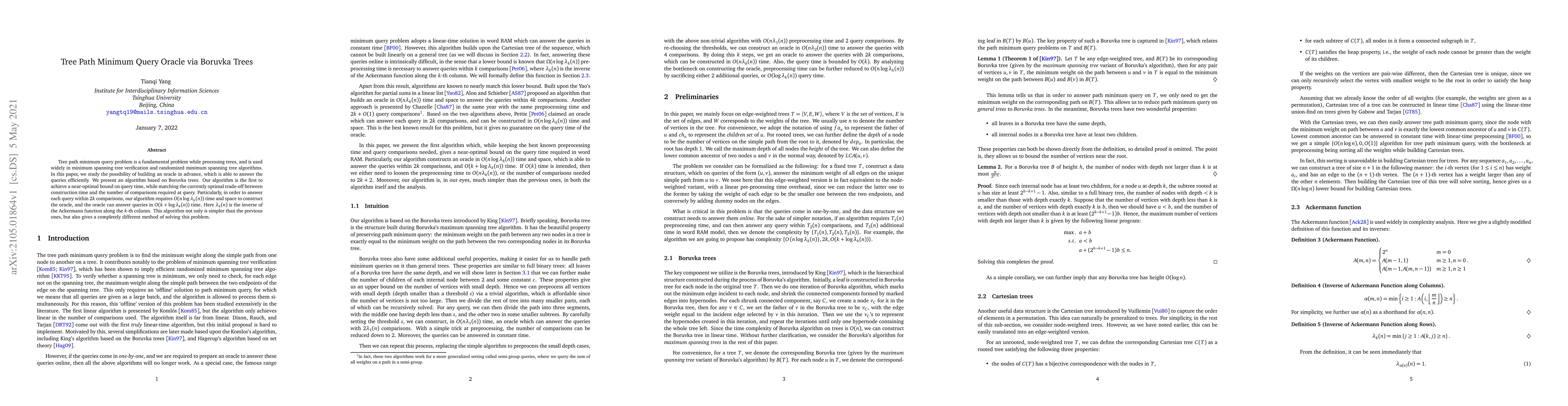 Researchers developed an efficient algorithm using Boruvka trees to answer tree path minimum queries, achieving a near-optimal bound on query time while matching the optimal trade-off between construction time and comparisons required at query.