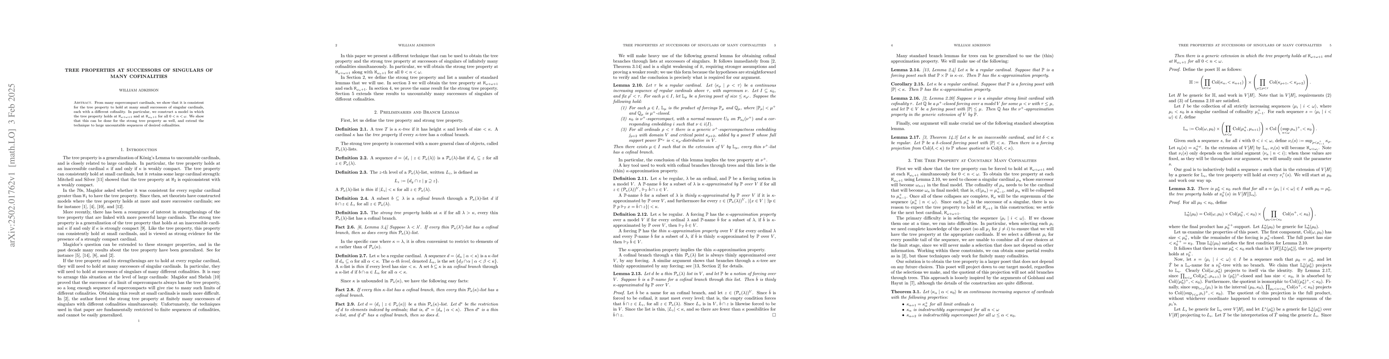 This research contributes to understanding tree properties at successors of singular cardinals, which is crucial in set theory and the study of large cardinals, impacting our comprehension of combinatorial principles and forcing techniques.