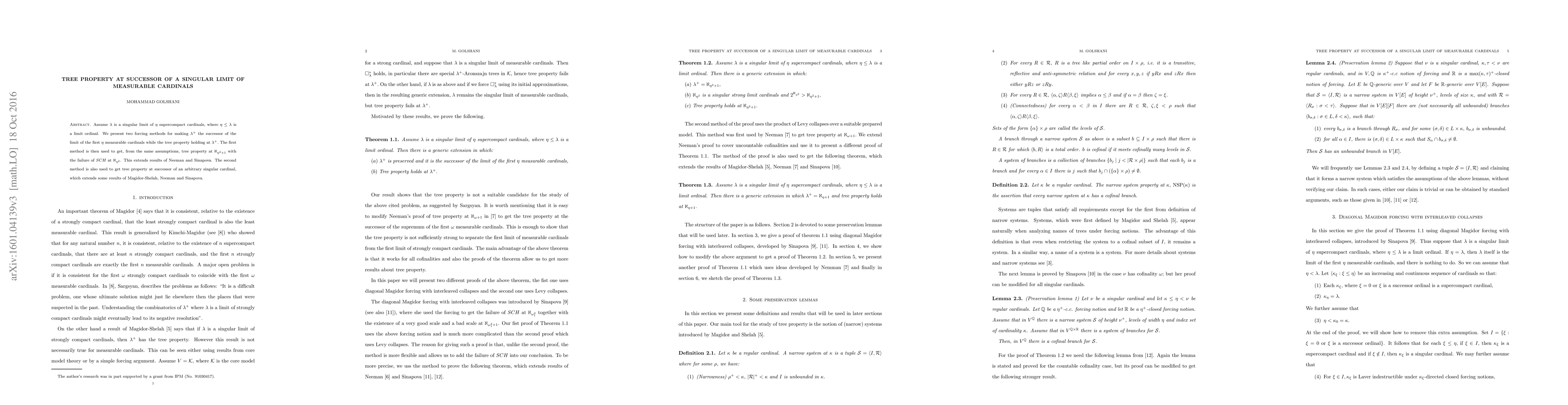 Assume $\lambda$ is a singular limit of $\eta$ supercompact cardinals, where $\eta \leq \lambda$ is a limit ordinal. We present two forcing methods for making $\lambda^+$ the successor of the limit of the first $\eta$ measurable cardinals while the tree property holding at $\lambda^+.$ The first method is then used to get, from the same assumptions, tree property at $\aleph_{\eta^2+1}$ with the failure of $SCH$ at $\aleph_{\eta^2}$. This extends results of Neeman and Sinapova. The second method is also used to get tree property at successor of an arbitrary singular cardinal, which extends some results of Magidor-Shelah, Neeman and Sinapova.