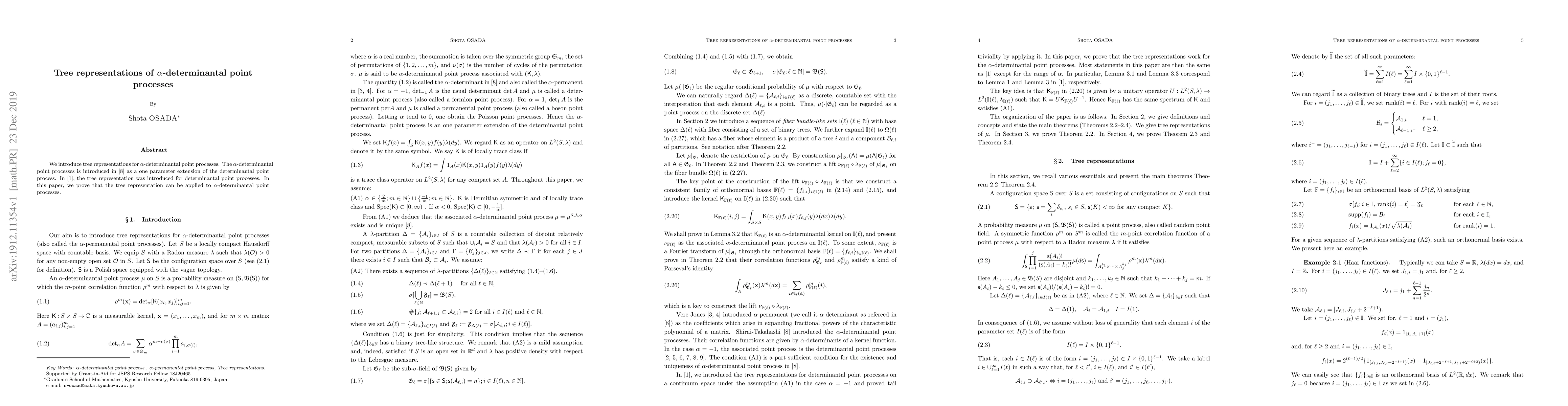 This paper extends tree representations from determinantal point processes to $ \alpha$-determinantal point processes, demonstrating the applicability of these representations to a one-parameter generalization of determinantal processes.
