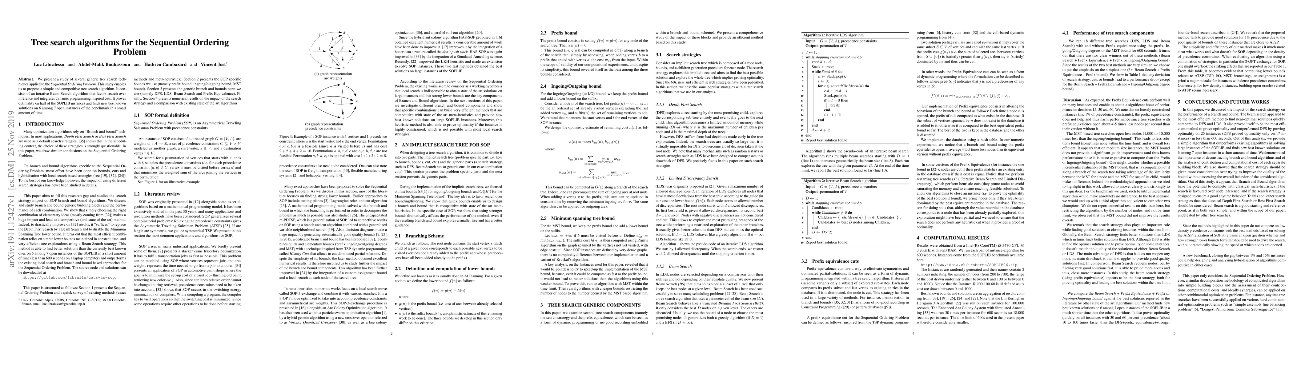 A new tree search algorithm is proposed for the Sequential Ordering Problem, achieving optimality on half of SOPLIB instances and finding new best known solutions in a small amount of time.