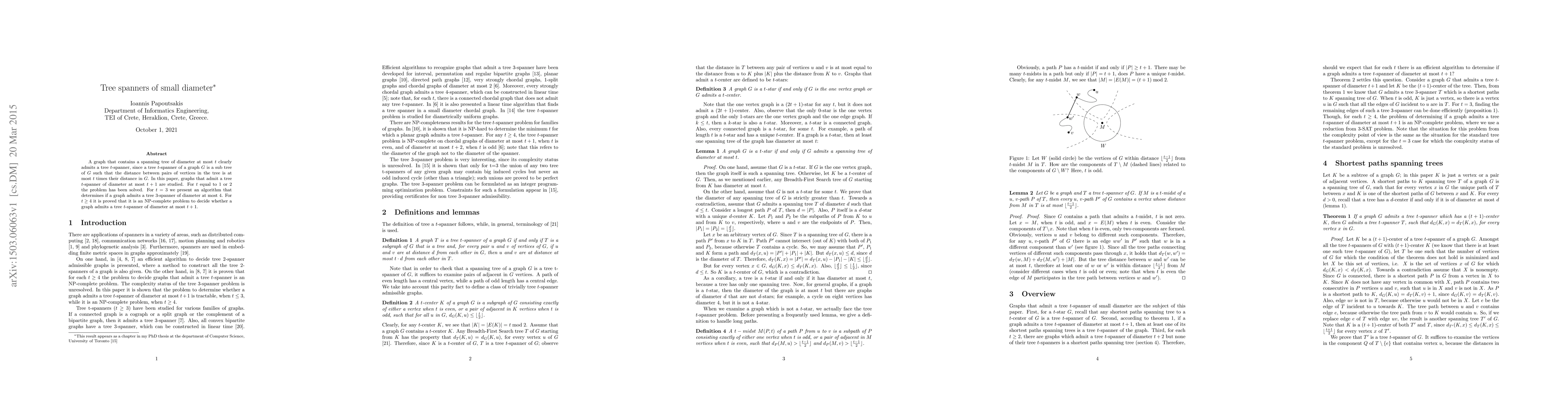 A new study investigates whether certain graphs can admit a tree spanner of diameter at most t+1, with solutions found for t=1 to 2 and an algorithm developed for t=3, while proving NP-completeness for t>=4.