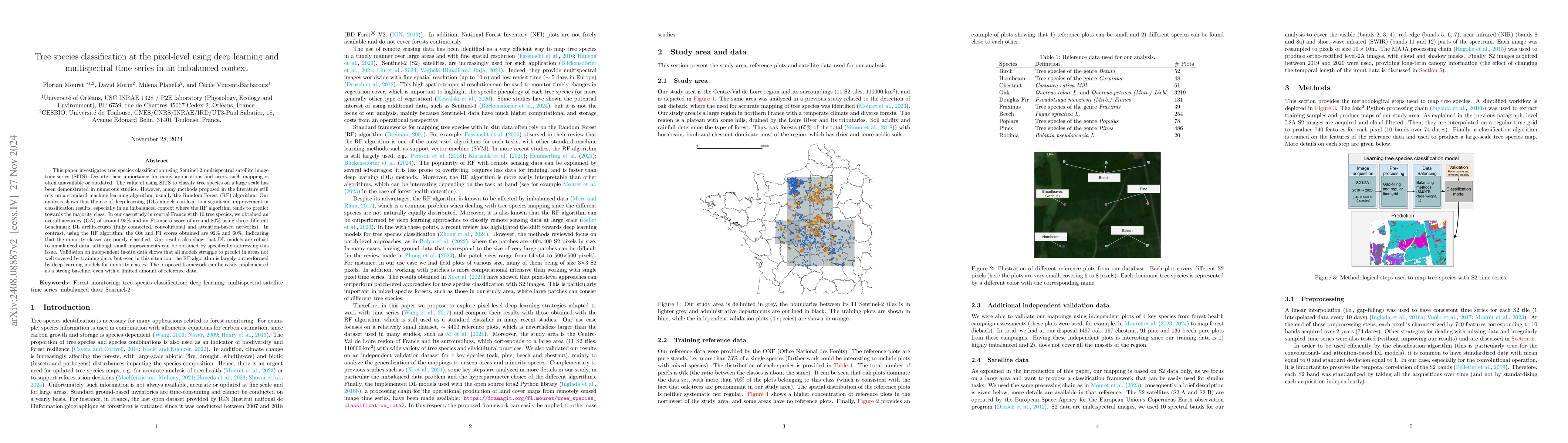 The paper presents a novel framework for pixel-level tree species classification using deep learning architectures, demonstrating their superiority over traditional methods in imbalanced contexts.