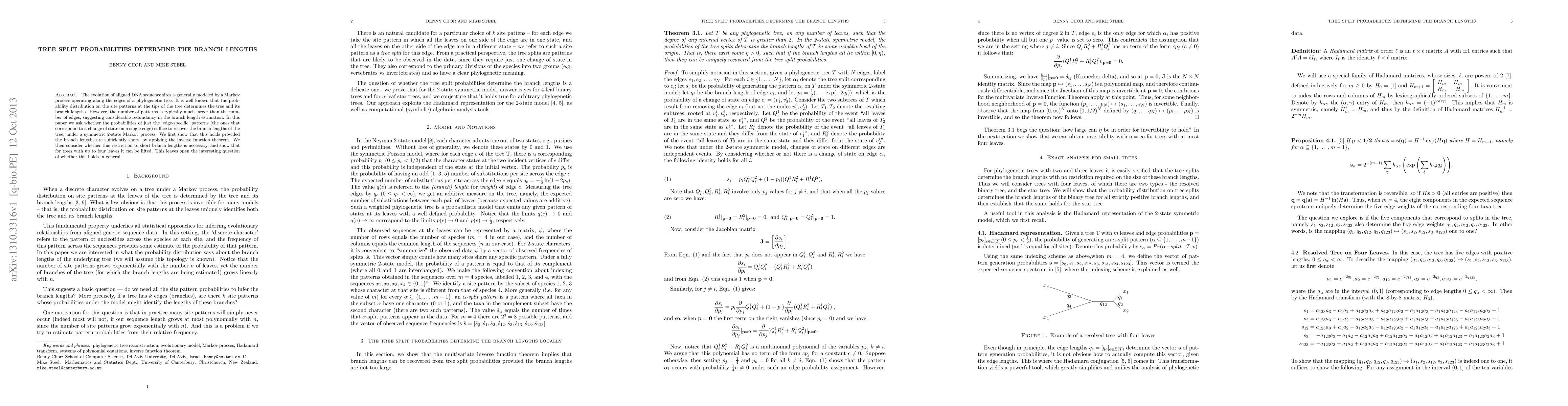 The evolution of aligned DNA sequence sites is generally modeled by a Markov process operating along the edges of a phylogenetic tree. It is well known that the probability distribution on the site patterns at the tips of the tree determines the tree and its branch lengths. However, the number of patterns is typically much larger than the number of edges, suggesting considerable redundancy in the branch length estimation. In this paper we ask whether the probabilities of just the `edge-specific' patterns (the ones that correspond to a change of state on a single edge) suffice to recover the branch lengths of the tree, under a symmetric 2-state Markov process. We first show that this holds provided the branch lengths are sufficiently short, by applying the inverse function theorem. We then consider whether this restriction to short branch lengths is necessary, and show that for trees with up to four leaves it can be lifted. This leaves open the interesting question of whether this holds in general.