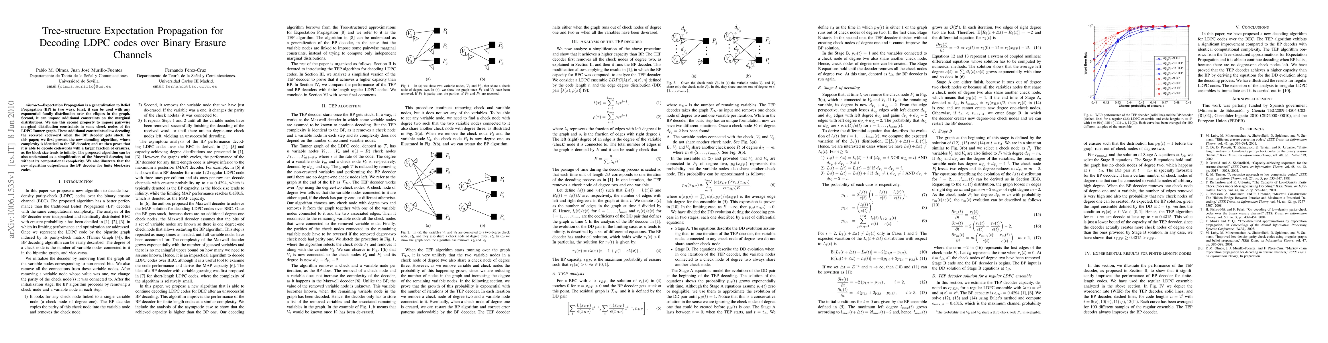 Expectation Propagation is a generalization to Belief Propagation (BP) in two ways. First, it can be used with any exponential family distribution over the cliques in the graph. Second, it can impose additional constraints on the marginal distributions. We use this second property to impose pair-wise marginal distribution constraints in some check nodes of the LDPC Tanner graph. These additional constraints allow decoding the received codeword when the BP decoder gets stuck. In this paper, we first present the new decoding algorithm, whose complexity is identical to the BP decoder, and we then prove that it is able to decode codewords with a larger fraction of erasures, as the block size tends to infinity. The proposed algorithm can be also understood as a simplification of the Maxwell decoder, but without its computational complexity. We also illustrate that the new algorithm outperforms the BP decoder for finite block-size