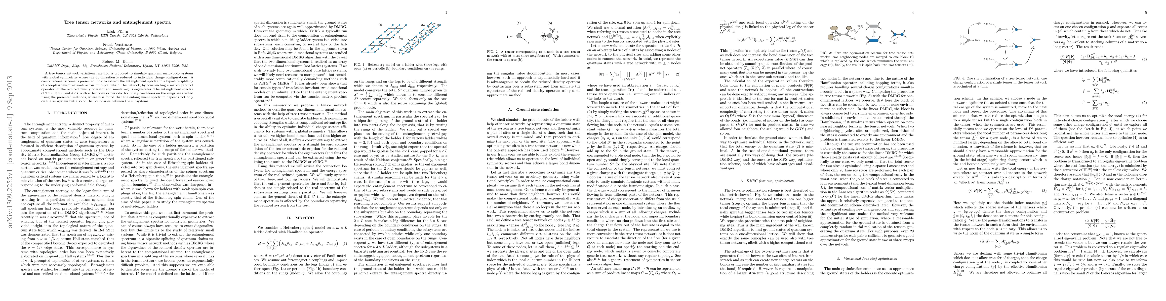 The paper proposes a tree tensor network variational method for simulating quantum many-body systems with global symmetries, optimizing through individual charge configurations. It presents a computational scheme to extract entanglement spectra by constructing a matrix product operator for the reduced density operator and simulating its eigenstates.