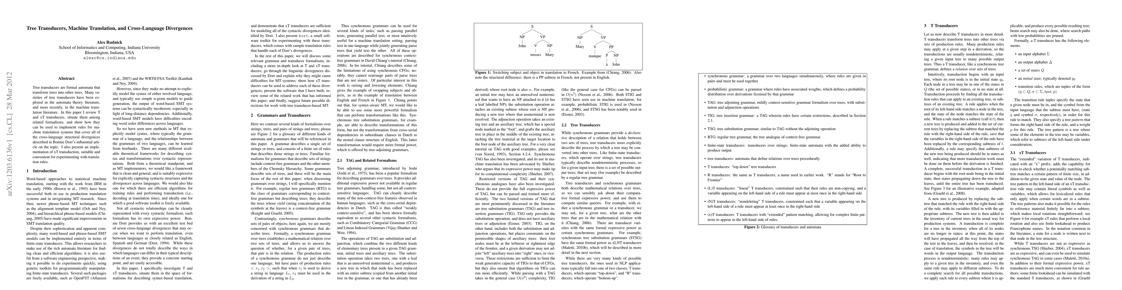 This paper reviews T and xT tree transducers, situating them among related formalisms, and demonstrates their application in implementing machine translation rules to address cross-language structural divergences, with a practical implementation of xT transduction for experimentation.