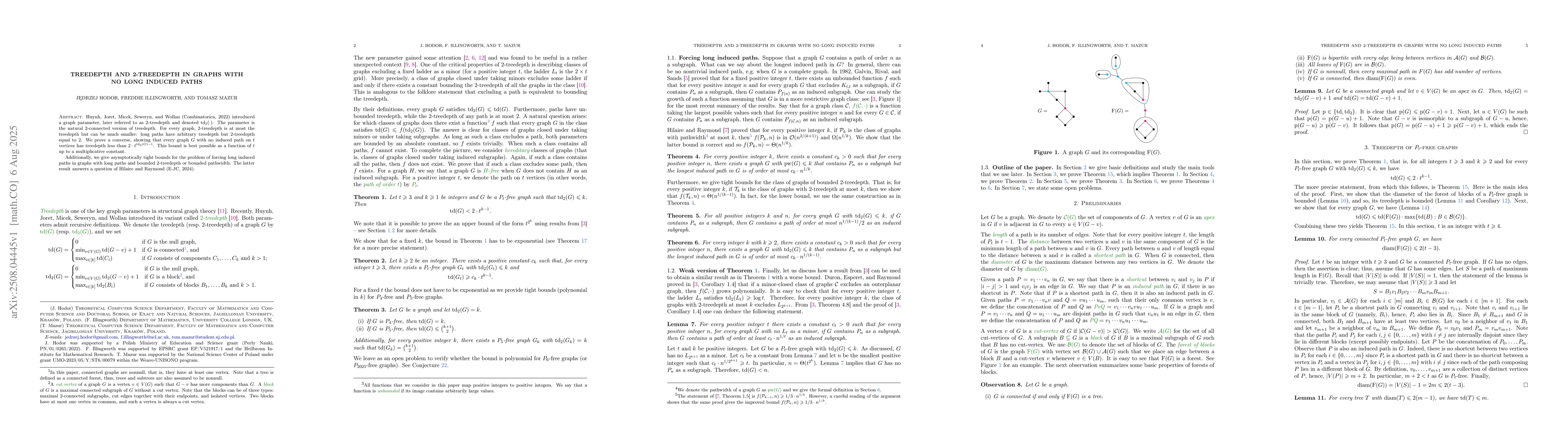 The paper introduces and studies the 2-treedepth parameter, proves a converse to a known result regarding treedepth and 2-treedepth, and provides asymptotically tight bounds for forcing long induced paths in graphs with long paths and bounded 2-treedepth or bounded pathwidth.