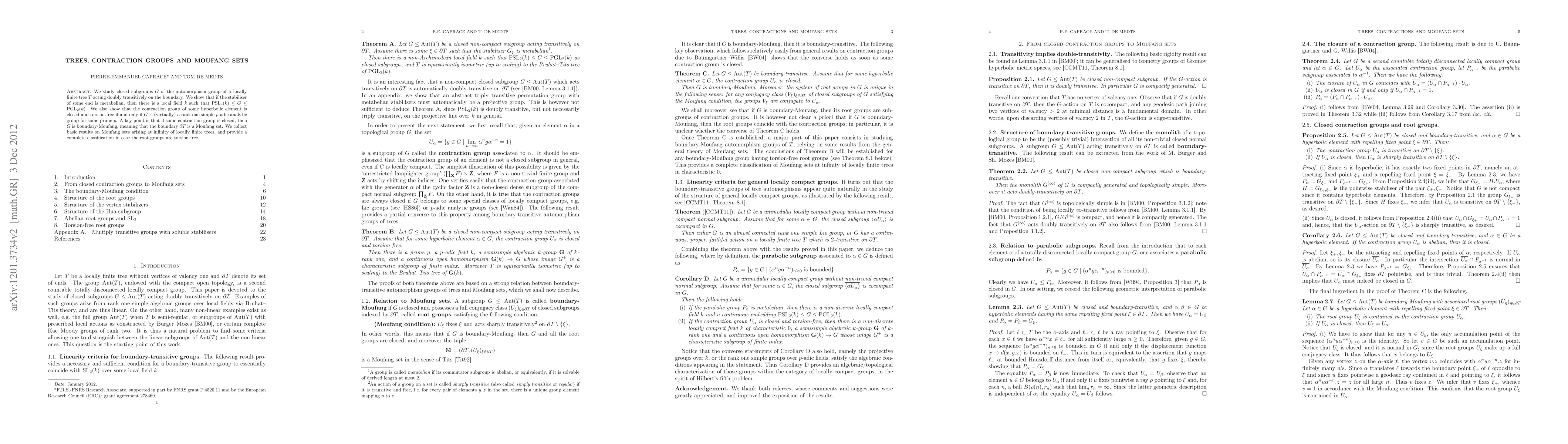 This research explores closed subgroups G of automorphism groups of locally finite trees T, acting doubly transitively on the tree's boundary. It demonstrates that if the stabilizer of an end is metabelian, then G contains PSL_2(k) and PGL_2(k) for some local field k. Additionally, it shows that a contraction group of a hyperbolic element is closed and torsion-free if and only if G is a rank one simple p-adic analytic group for some prime p. The study highlights that if a contraction group is closed, G becomes boundary-Moufang, making the boundary a Moufang set. The paper consolidates fundamental results on Moufang sets at the infinity of locally finite trees, offering a full classification when root groups are torsion-free.