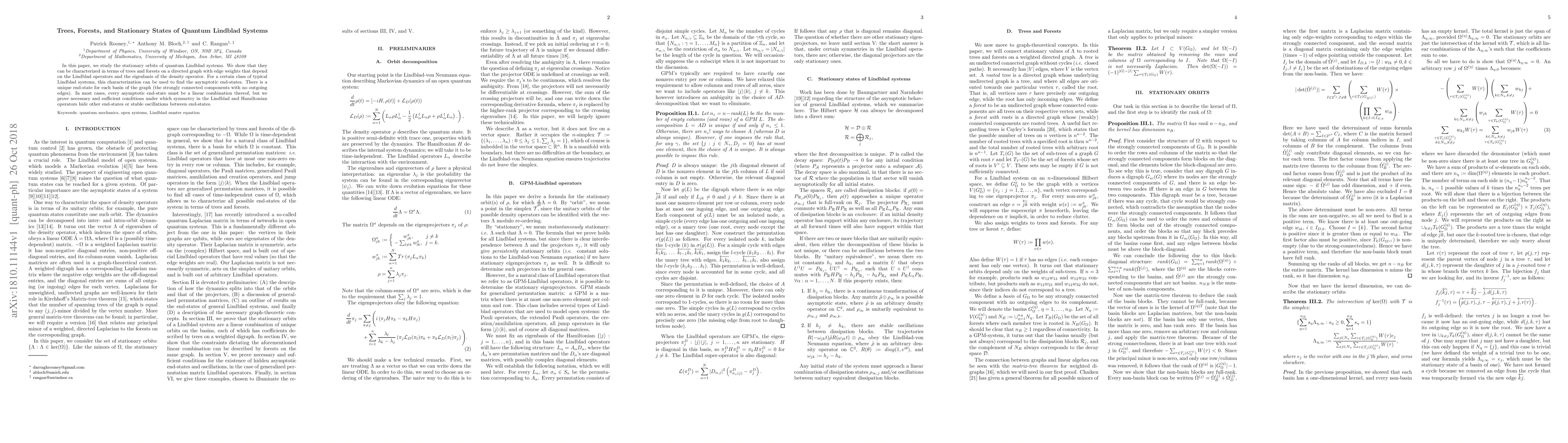 This paper explores the stationary states of quantum Lindblad systems, revealing that they can be represented by trees and forests on a directed graph. It identifies unique end-states for each basin of the graph, with additional conditions proving the existence of hidden end-states or oscillations due to symmetries in the system's operators.