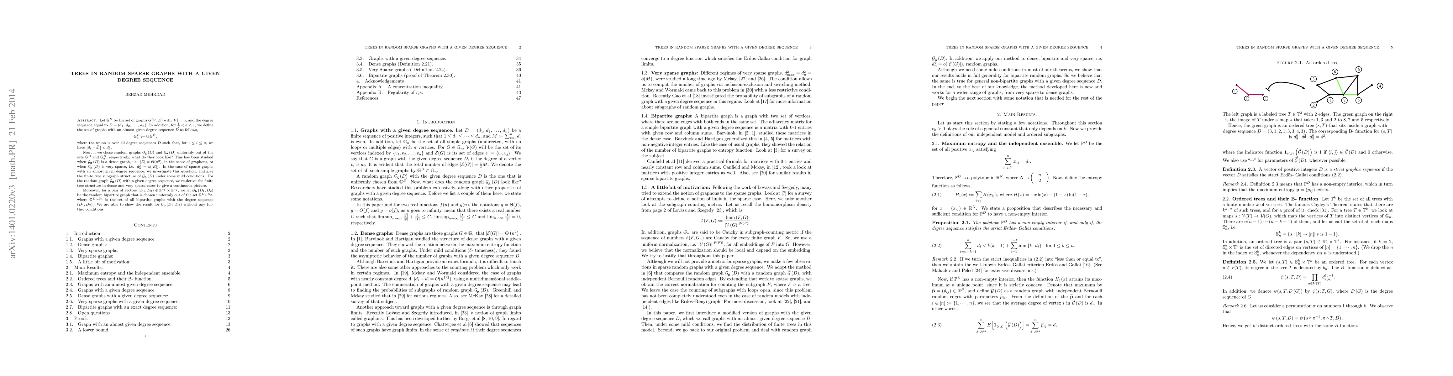 This paper studies the structure of random sparse graphs with a given degree sequence, focusing on the finite tree subgraphs in both dense and very sparse cases. It also examines random bipartite graphs with specified degree sequences, providing results without additional conditions.