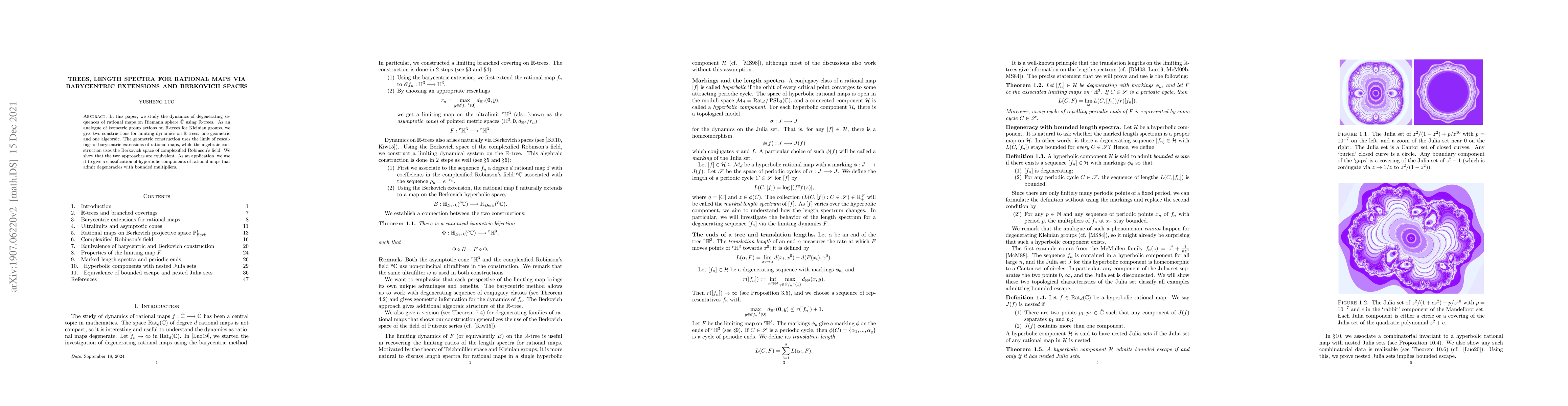 This paper investigates the dynamics of degenerating sequences of rational maps on the Riemann sphere using $\mathbb{R}$-trees. It presents two constructions for limiting dynamics: one geometric via ultralimits of rescalings of barycentric extensions, and one algebraic through Berkovich spaces, showing their equivalence and classifying hyperbolic components based on bounded length spectra.