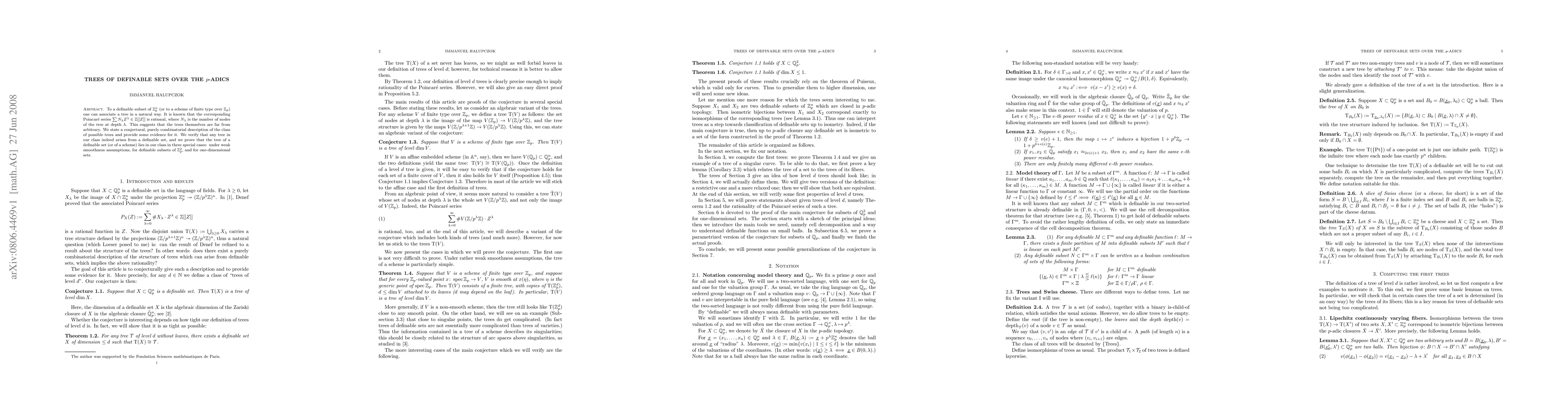 This paper explores the association between definable sets over the p-adic integers and corresponding trees, showing that the associated Poincare series is rational. The authors propose a combinatorial conjecture for the structure of these trees and verify it in several special cases, including weakly smooth assumptions and subsets of Z_p^2.