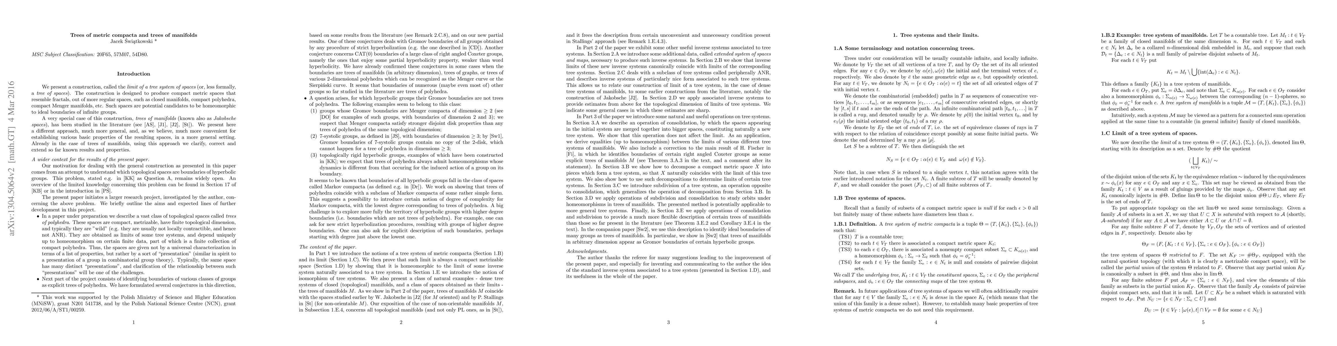 This paper introduces a novel construction called the limit of a tree system of spaces, designed to generate fractal-like compact metric spaces from regular spaces such as manifolds. This method provides a general framework for studying these spaces, clarifying, correcting, and extending known properties, especially in the special case of trees of manifolds.