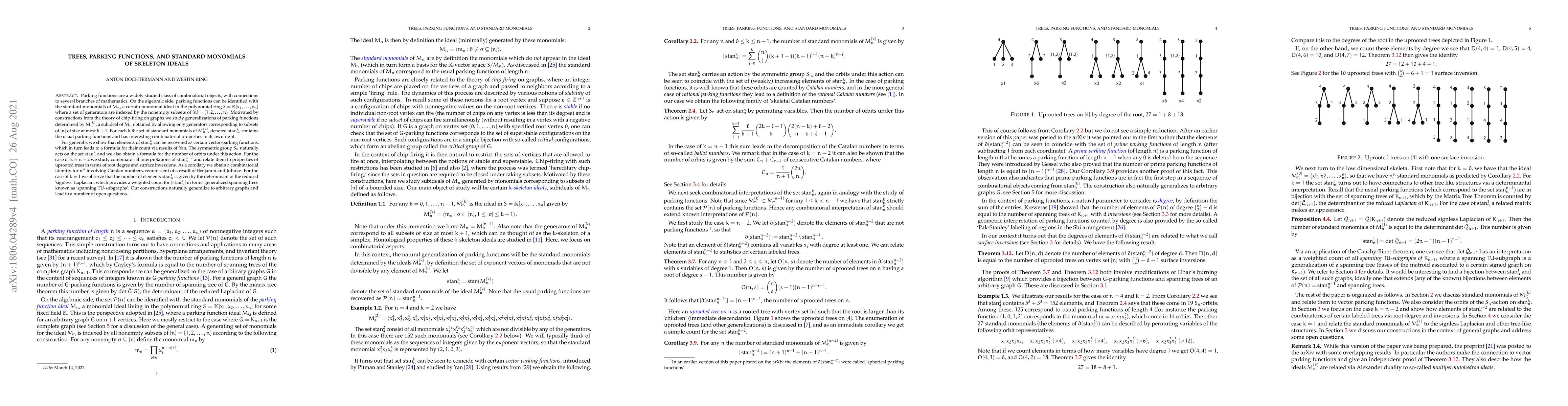 Parking functions are a widely studied class of combinatorial objects, with connections to several branches of mathematics. On the algebraic side, parking functions can be identified with the standard monomials of $M_n$, a certain monomial ideal in the polynomial ring $S = {\mathbb K}[x_1, \dots, x_n]$ where a set of generators are indexed by the nonempty subsets of $[n] = \{1,2,\dots,n\}$. Motivated by constructions from the theory of chip-firing on graphs we study generalizations of parking functions determined by $M^{(k)}_n$, a subideal of $M_n$ obtained by allowing only generators corresponding to subsets of $[n]$ of size at most $k$. For each $k$ the set of standard monomials of $M^{(k)}_n$, denoted $\text{stan}_n^k$, contains the usual parking functions and has interesting combinatorial properties in its own right. For general $k$ we show that elements of $\text{stan}_n^k$ can be recovered as certain vector-parking functions, which in turn leads to a formula for their count via results of Yan. The symmetric group $S_n$ naturally acts on the set $\text{stan}_n^k$ and we also obtain a formula for the number of orbits under this action. For the case of $k = n-2$ we study combinatorial interpretations of $\text{stan}_n^{n-2}$ and relate them to properties of uprooted trees in terms of root degree and surface inversions. As a corollary we obtain a combinatorial identity for $n^n$ involving Catalan numbers, reminiscent of a result of Benjamin and Juhnke. For the case of $k = 1$ we observe that the number of elements $\text{stan}_n^1$ is given by the determinant of the reduced `signless' Laplacian, which provides a weighted count for $|\text{stan}_n^1|$ in terms generalized spanning trees known as `spanning TU-subgraphs'. Our constructions naturally generalize to arbitrary graphs and lead to a number of open questions.