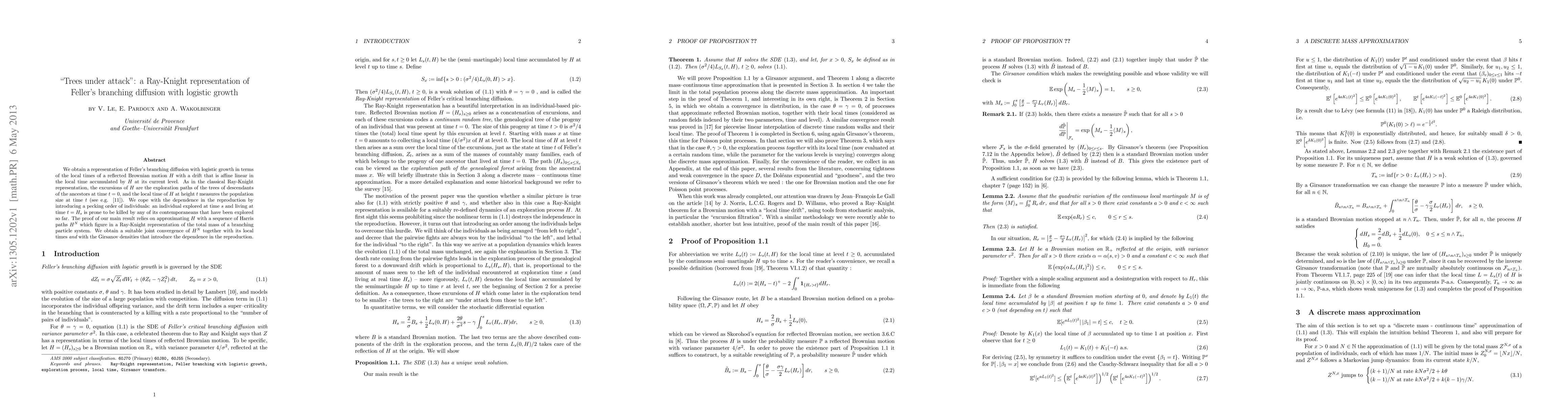 This research paper develops a Ray-Knight representation of Feller's branching diffusion with logistic growth, modeling tree populations as reflected Brownian motion processes influenced by peer competition.