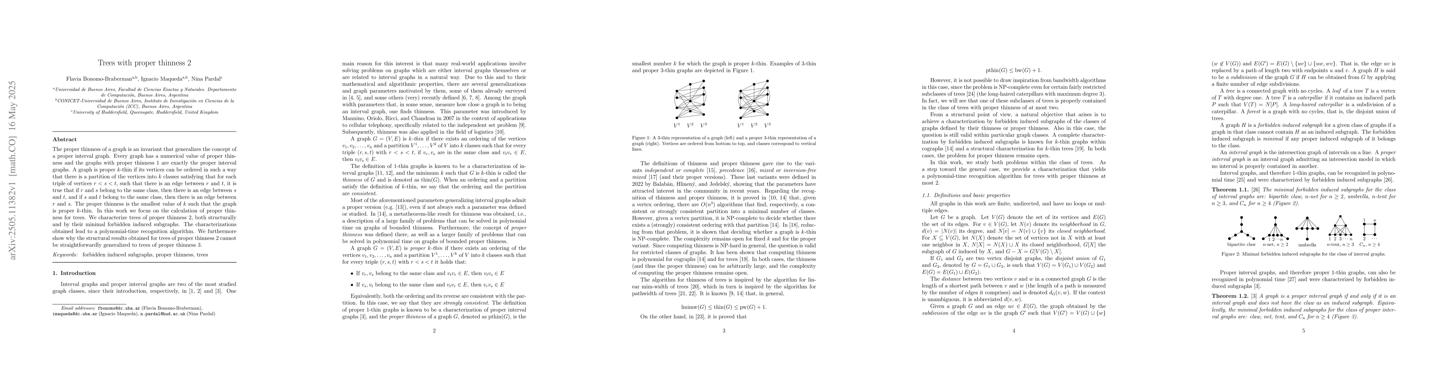 The research focuses on calculating the proper thinness for trees, characterizing them structurally and via minimal forbidden induced subgraphs, leading to a polynomial-time recognition algorithm.