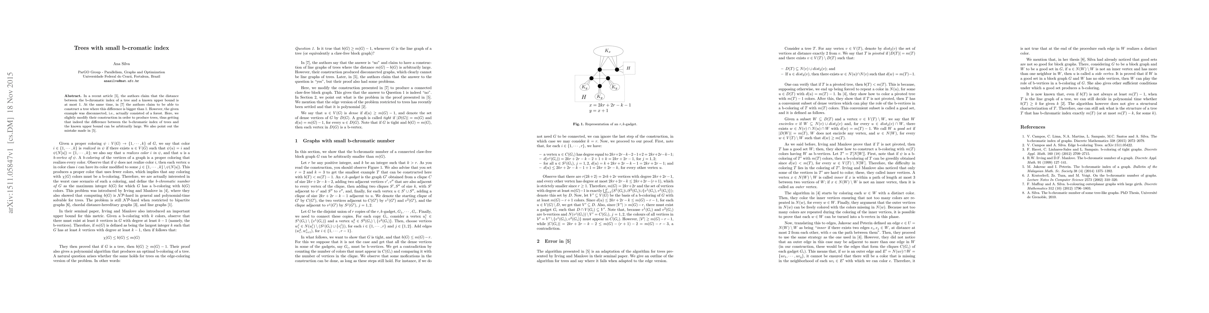 In a recent article [5], the authors claim that the distance between the b-chromatic index of a tree and a known upper bound is at most 1. At the same time, in [7] the authors claim to be able to construct a tree where this difference is bigger than 1. However, the given example was disconnected, i.e., actually consisted of a forest. Here, we slightly modify their construction in order to produce trees, thus getting that indeed the difference between the b-chromatic index of trees and the known upper bound can be arbitrarily large. We also point out the mistake made in [5].