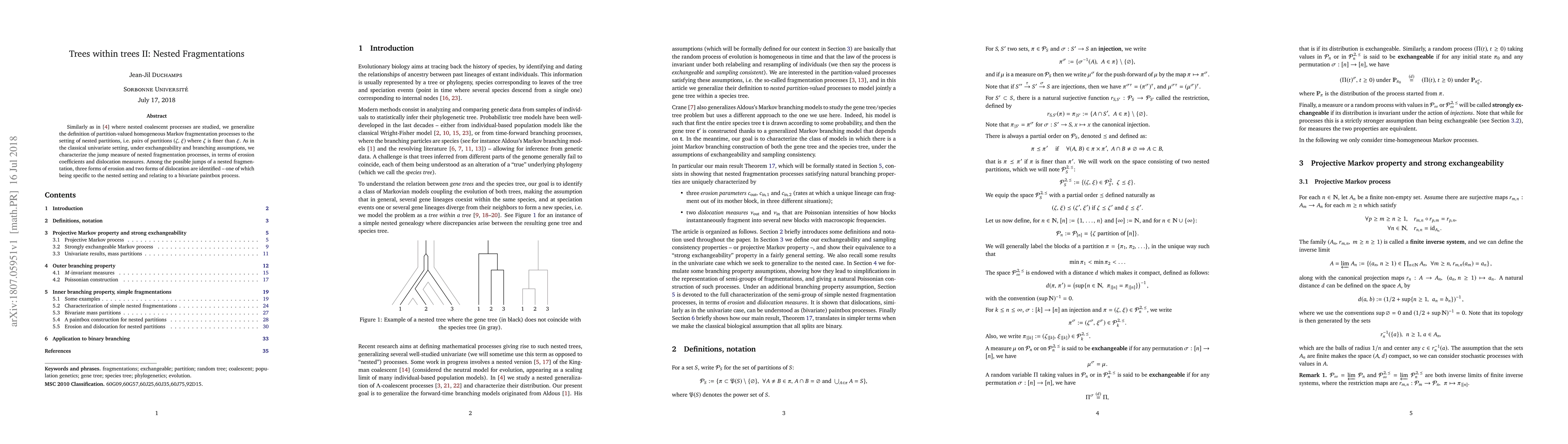 Similarly as in (Blancas et al. 2018) where nested coalescent processes are studied, we generalize the definition of partition-valued homogeneous Markov fragmentation processes to the setting of nested partitions, i.e. pairs of partitions $(\zeta,\xi)$ where $\zeta$ is finer than $\xi$. As in the classical univariate setting, under exchangeability and branching assumptions, we characterize the jump measure of nested fragmentation processes, in terms of erosion coefficients and dislocation measures. Among the possible jumps of a nested fragmentation, three forms of erosion and two forms of dislocation are identified - one of which being specific to the nested setting and relating to a bivariate paintbox process.