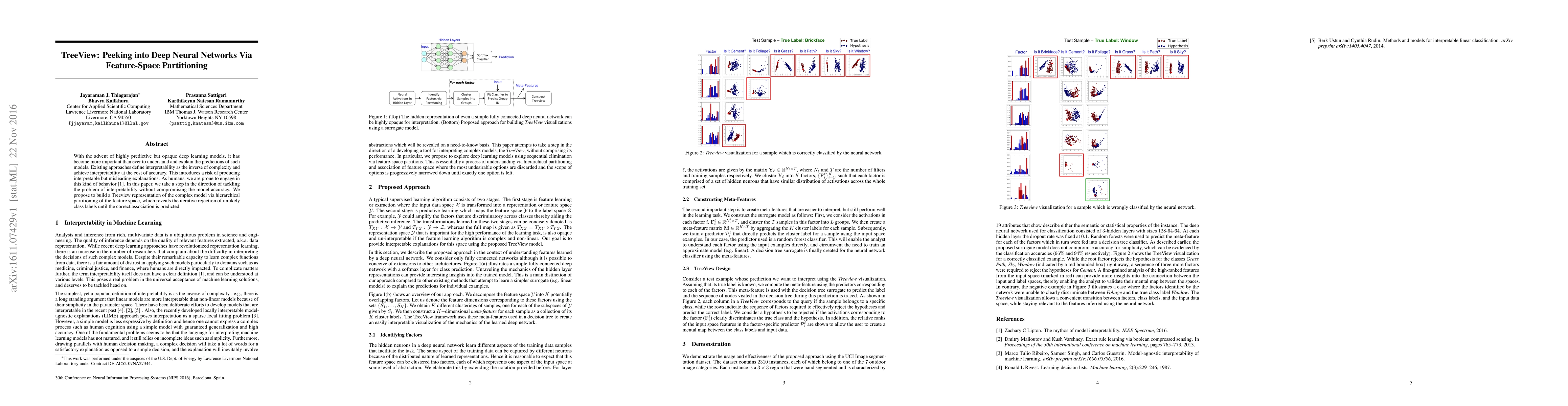 With the advent of highly predictive but opaque deep learning models, it has become more important than ever to understand and explain the predictions of such models. Existing approaches define interpretability as the inverse of complexity and achieve interpretability at the cost of accuracy. This introduces a risk of producing interpretable but misleading explanations. As humans, we are prone to engage in this kind of behavior \cite{mythos}. In this paper, we take a step in the direction of tackling the problem of interpretability without compromising the model accuracy. We propose to build a Treeview representation of the complex model via hierarchical partitioning of the feature space, which reveals the iterative rejection of unlikely class labels until the correct association is predicted.