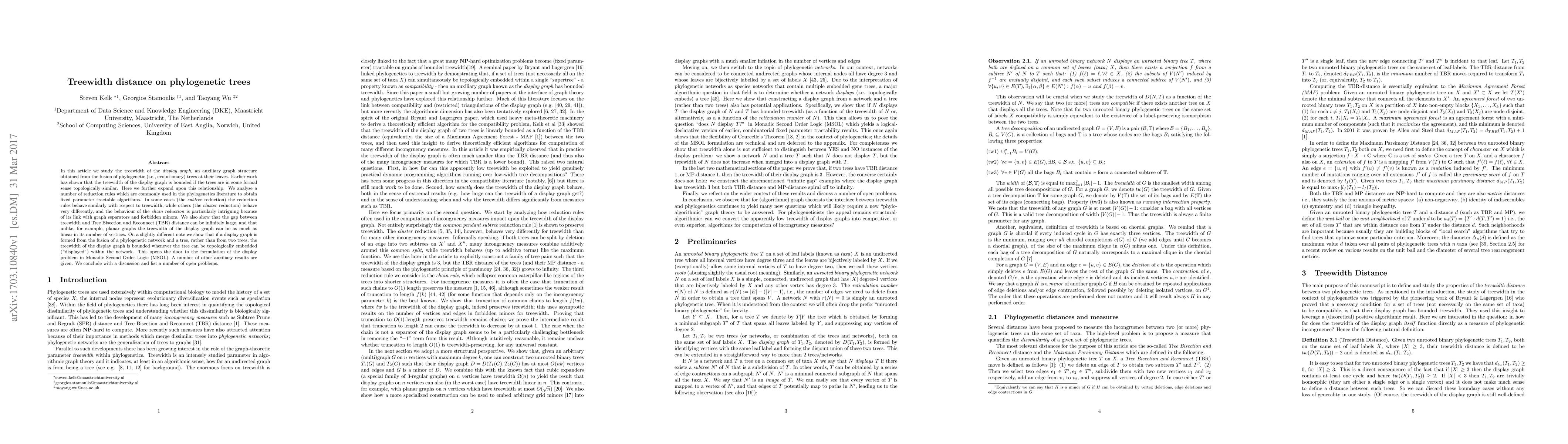 Researchers study the relationship between treewidth distance and phylogenetic trees, finding that treewidth can be unbounded even in planar graphs, but is bounded under specific conditions.