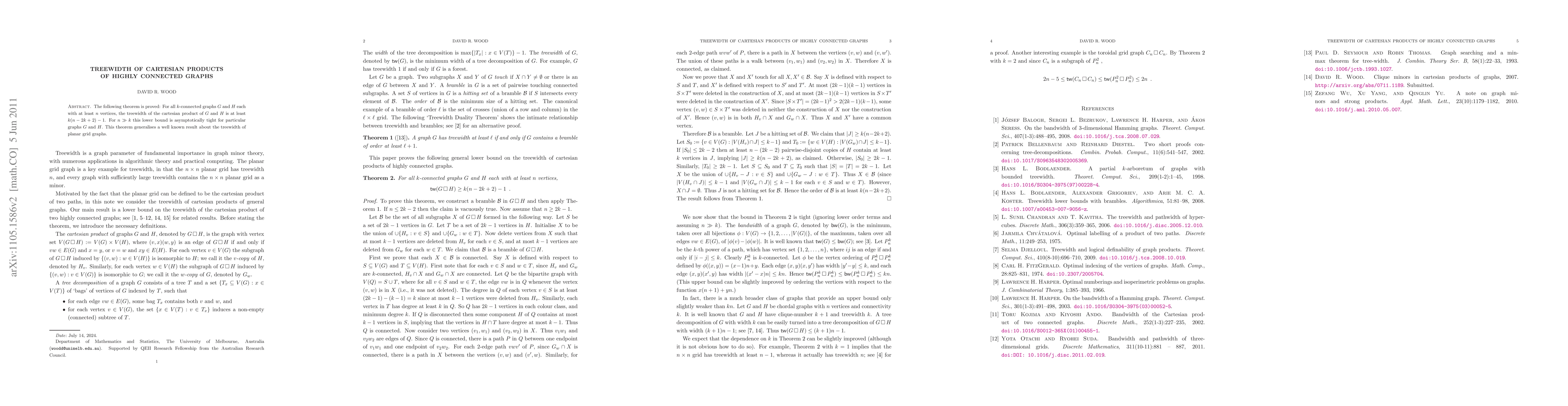 The following theorem is proved: For all $k$-connected graphs $G$ and $H$ each with at least $n$ vertices, the treewidth of the cartesian product of $G$ and $H$ is at least $k(n -2k+2)-1$. For $n\gg k$ this lower bound is asymptotically tight for particular graphs $G$ and $H$. This theorem generalises a well known result about the treewidth of planar grid graphs.