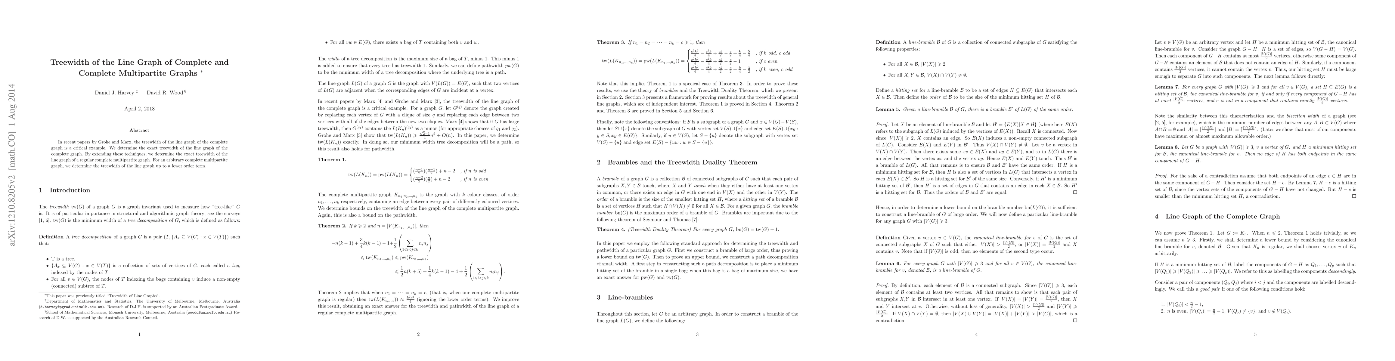 The paper presents novel techniques for calculating the treewidth of line graphs of complete and regular complete multipartite graphs, extending previous results by Grohe and Marx.
