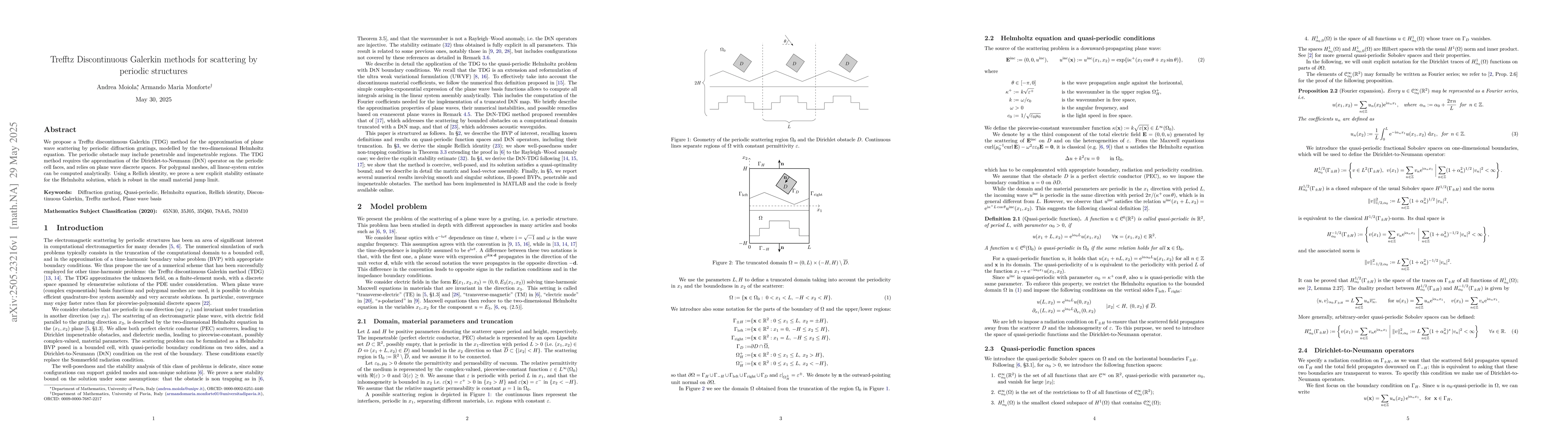 The paper introduces a novel TDG method for periodic scattering problems, incorporating an explicit stability estimate and analytical computation of linear-system entries.