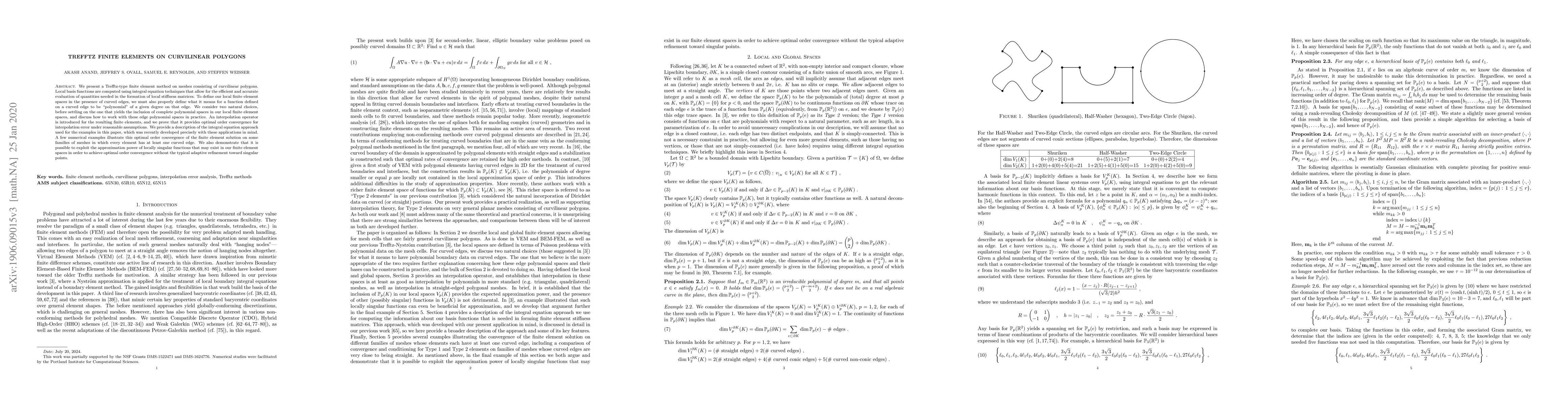 We present a Trefftz-type finite element method on meshes consisting of curvilinear polygons. Local basis functions are computed using integral equation techniques that allow for the efficient and accurate evaluation of quantities needed in the formation of local stiffness matrices. To define our local finite element spaces in the presence of curved edges, we must also properly define what it means for a function defined on a curved edge to be "polynomial" of a given degree on that edge. We consider two natural choices, before settling on the one that yields the inclusion of complete polynomial spaces in our local finite element spaces, and discuss how to work with these edge polynomial spaces in practice. An interpolation operator is introduced for the resulting finite elements, and we prove that it provides optimal order convergence for interpolation error under reasonable assumptions. We provide a description of the integral equation approach used for the examples in this paper, which was recently developed precisely with these applications in mind. A few numerical examples illustrate this optimal order convergence of the finite element solution on some families of meshes in which every element has at least one curved edge. We also demonstrate that it is possible to exploit the approximation power of locally singular functions that may exist in our finite element spaces in order to achieve optimal order convergence without the typical adaptive refinement toward singular points.