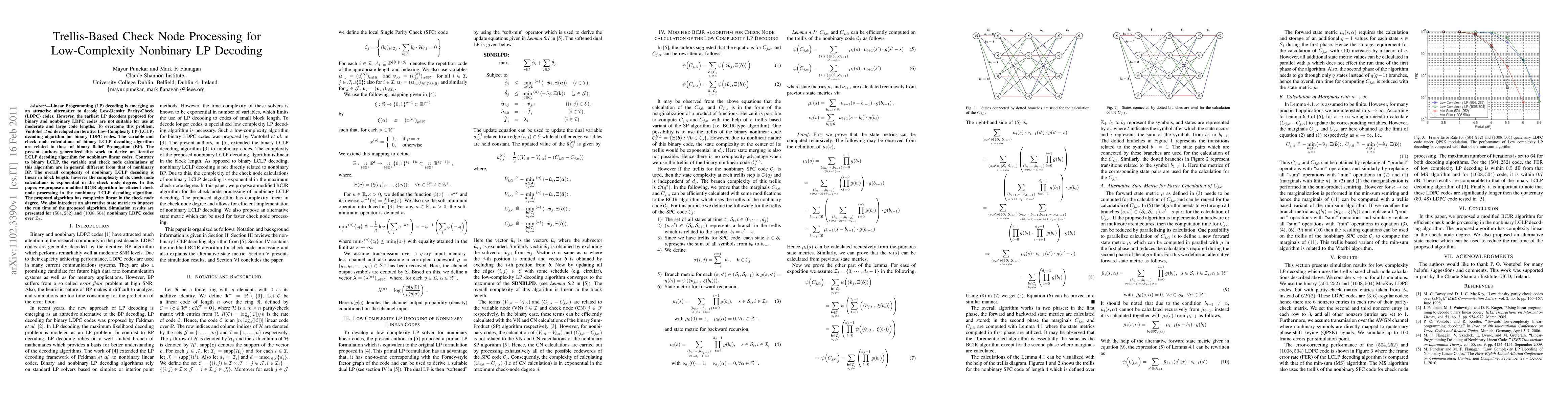 Linear Programming (LP) decoding is emerging as an attractive alternative to decode Low-Density Parity-Check (LDPC) codes. However, the earliest LP decoders proposed for binary and nonbinary LDPC codes are not suitable for use at moderate and large code lengths. To overcome this problem, Vontobel et al. developed an iterative Low-Complexity LP (LCLP) decoding algorithm for binary LDPC codes. The variable and check node calculations of binary LCLP decoding algorithm are related to those of binary Belief Propagation (BP). The present authors generalized this work to derive an iterative LCLP decoding algorithm for nonbinary linear codes. Contrary to binary LCLP, the variable and check node calculations of this algorithm are in general different from that of nonbinary BP. The overall complexity of nonbinary LCLP decoding is linear in block length; however the complexity of its check node calculations is exponential in the check node degree. In this paper, we propose a modified BCJR algorithm for efficient check node processing in the nonbinary LCLP decoding algorithm. The proposed algorithm has complexity linear in the check node degree. We also introduce an alternative state metric to improve the run time of the proposed algorithm. Simulation results are presented for $(504, 252)$ and $(1008, 504)$ nonbinary LDPC codes over $\mathbb{Z}_4$.