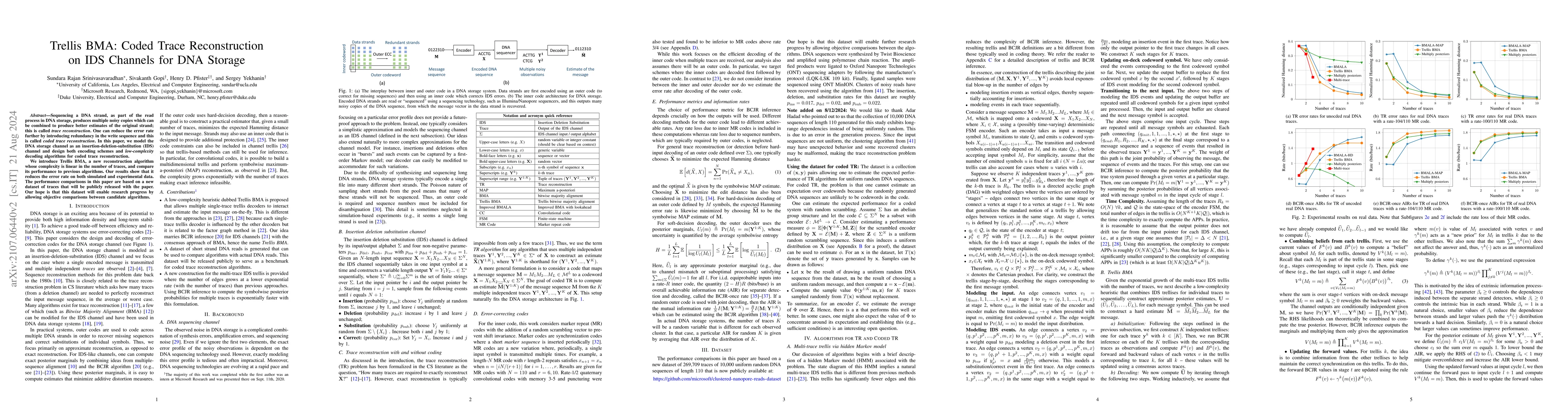 This paper introduces Trellis BMA, a novel algorithm for coded trace reconstruction in DNA storage, which models the DNA channel as an IDS channel. The algorithm reduces error rates by combining noisy DNA strand copies and is shown to outperform previous methods on both simulated and experimental data.