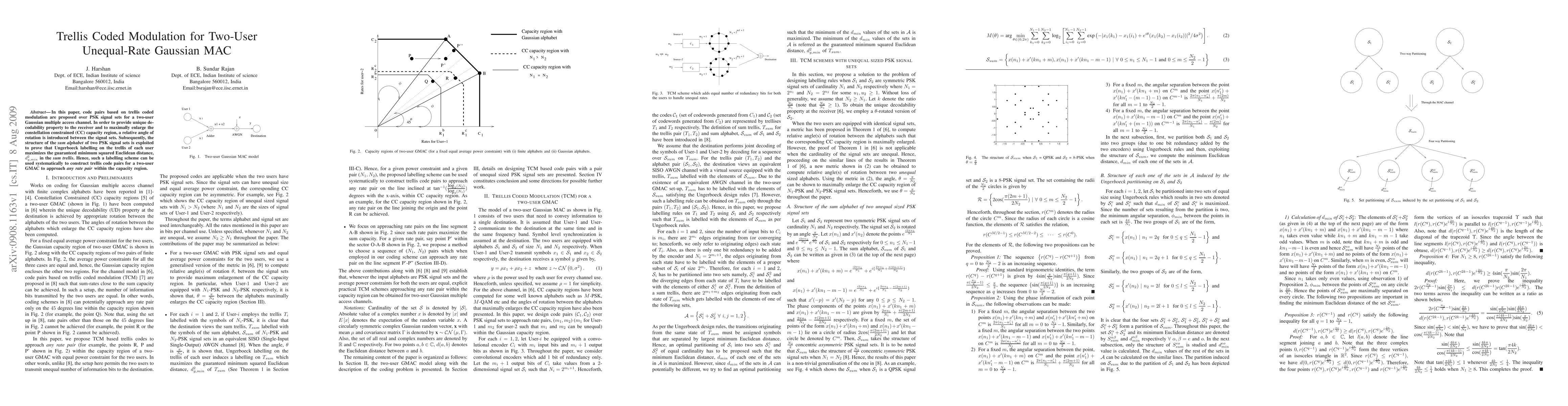 Researchers propose a new method for two-user Gaussian multiple access channels using trellis coded modulation with a relative angle of rotation to maximize the constellation-constrained capacity region. The method allows for any rate pair within the capacity region by systematically constructing trellis code pairs.