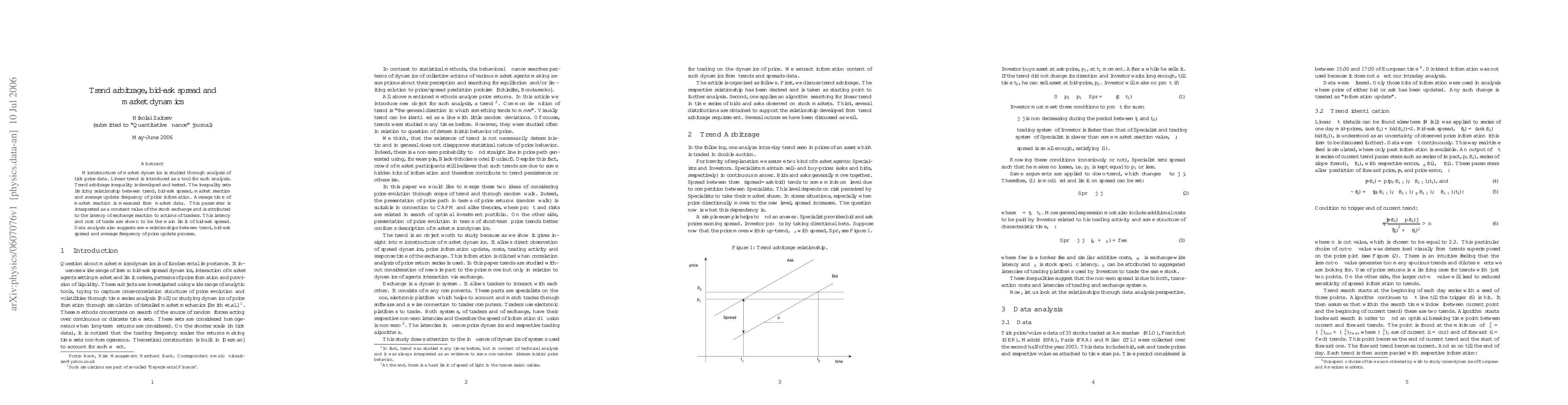 This paper analyzes market microstructure using tick price data and introduces a linear trend to study market dynamics. It develops and tests a trend arbitrage inequality that links trend, bid-ask spread, market reaction time, and price update frequency, showing that trade latency and cost are key factors limiting the bid-ask spread.
