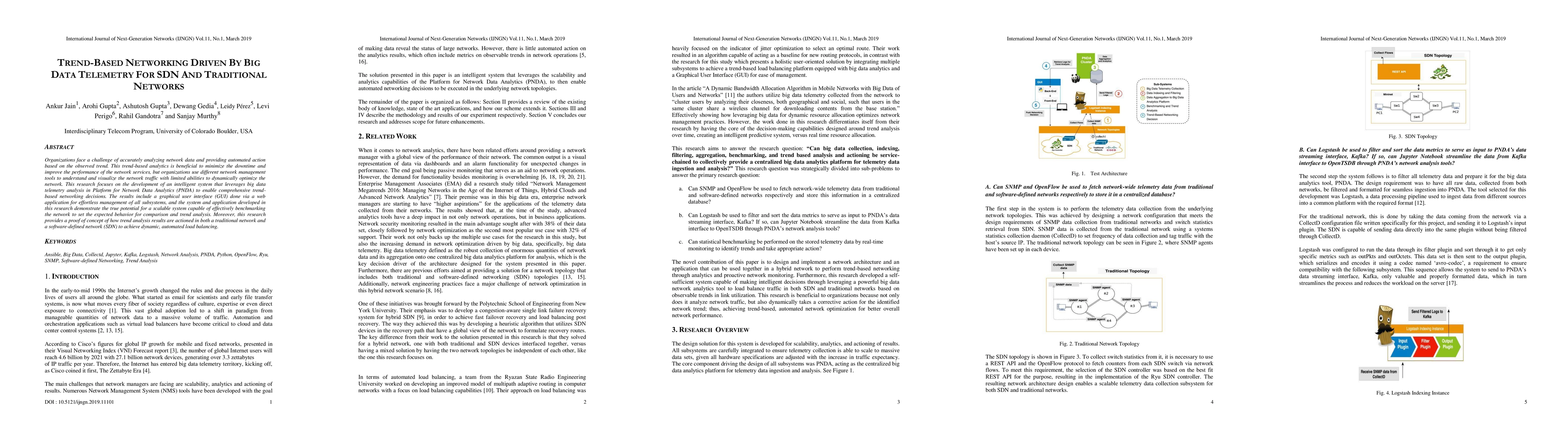 A new system uses big data telemetry to analyze network trends and make automated decisions to minimize downtime and improve performance. It successfully benchmarks traditional and software-defined networks for dynamic load balancing and trend analysis.