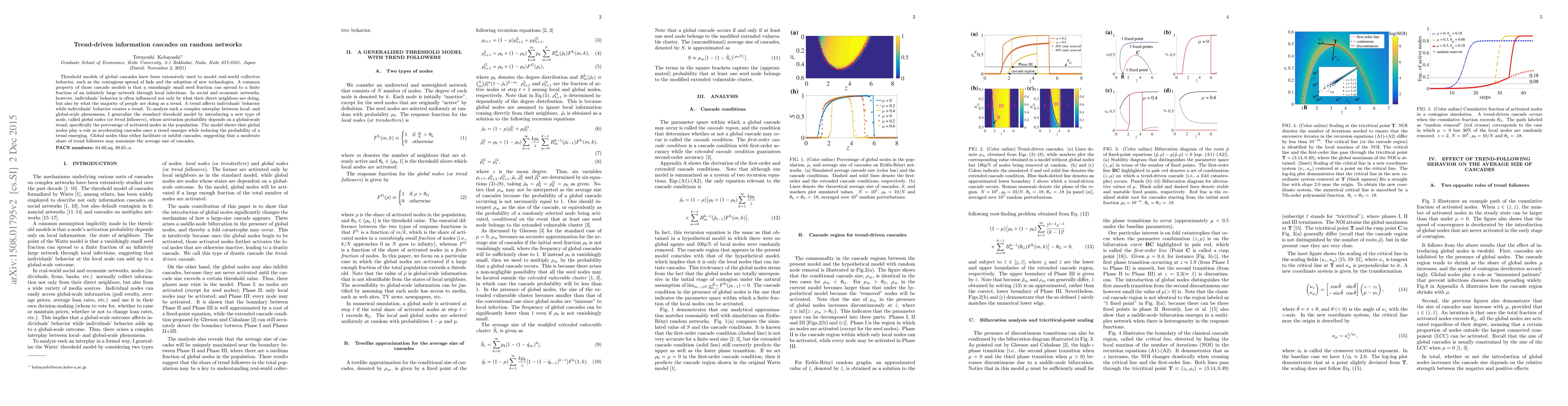 This paper generalizes threshold models to include "global nodes" that follow trends, showing how these trend followers can either accelerate or inhibit information cascades, suggesting an optimal share of trend followers maximizes cascade size.