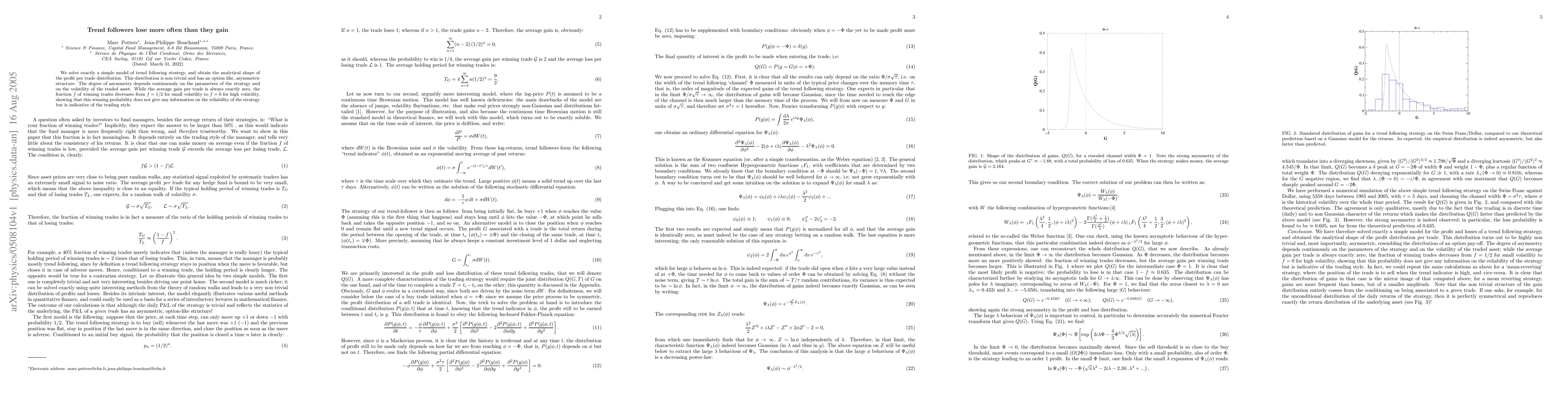 We solve exactly a simple model of trend following strategy, and obtain the analytical shape of the profit per trade distribution. This distribution is non trivial and has an option like, asymmetric structure. The degree of asymmetry depends continuously on the parameters of the strategy and on the volatility of the traded asset. While the average gain per trade is always exactly zero, the fraction f of winning trades decreases from f=1/2 for small volatility to f=0 for high volatility, showing that this winning probability does not give any information on the reliability of the strategy but is indicative of the trading style.