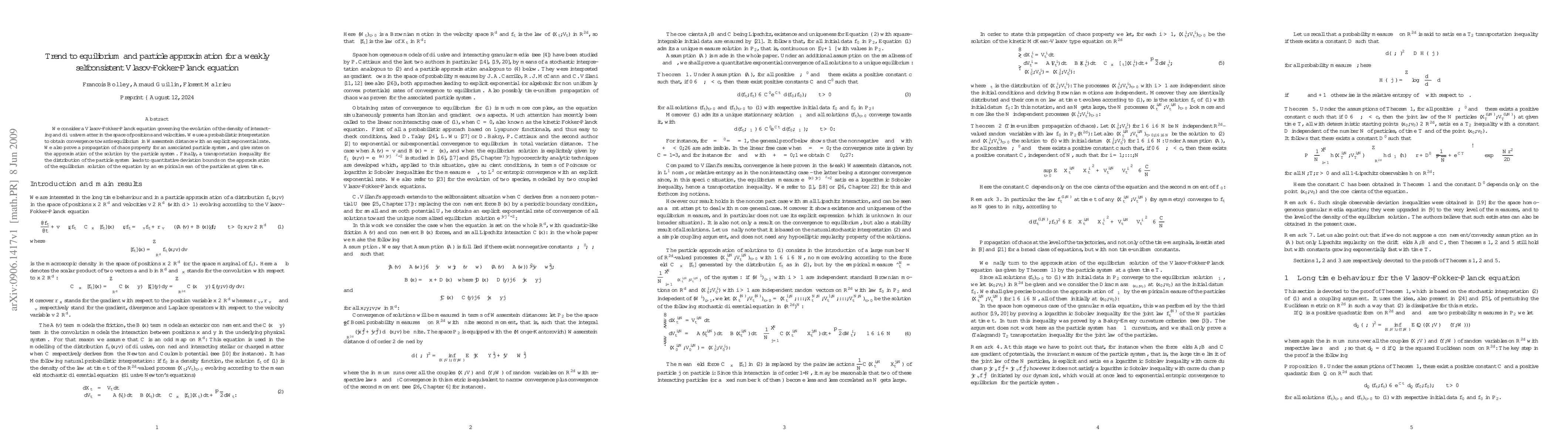 Research paper investigates the convergence of a Vlasov-Fokker-Planck equation to equilibrium using probabilistic methods and proves a propagation of chaos property for an associated particle system. It also provides quantitative deviation bounds on the approximation of equilibrium solutions by empirical means.