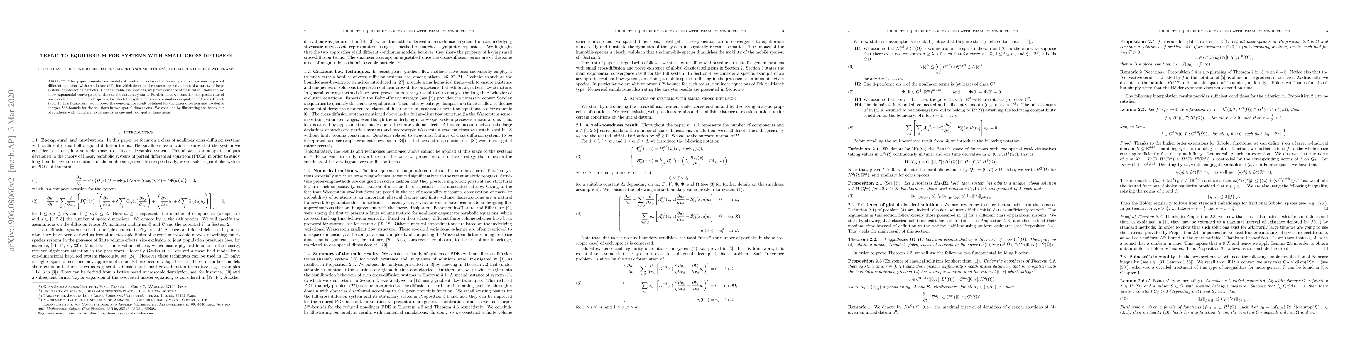 Researchers prove that systems with small cross-diffusion converge exponentially to their stationary state, a key finding for understanding macroscopic dynamics of interacting particles.