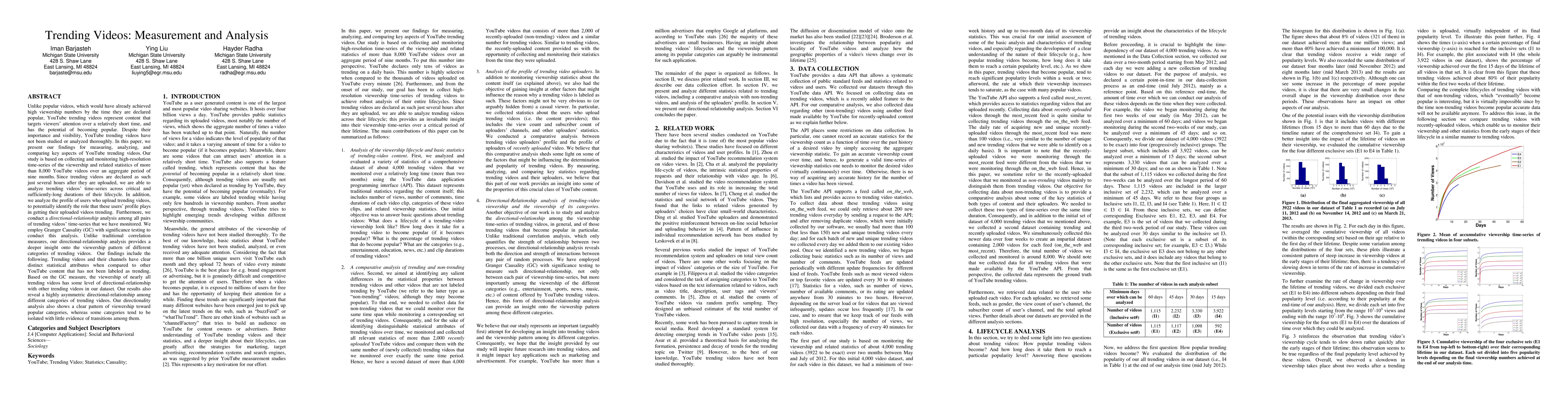 This paper measures and analyzes YouTube trending videos, focusing on viewership time-series and user profiles over nine months. It reveals distinct statistical attributes of trending videos and uncovers asymmetric directional relationships among different categories, indicating a pattern of viewership toward popular categories.