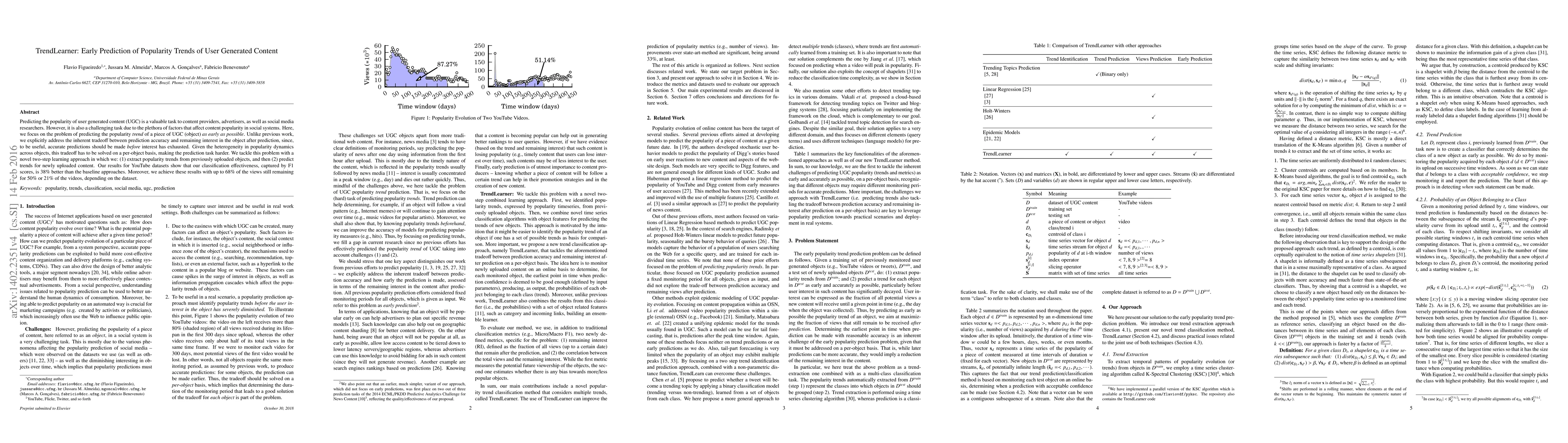 TrendLearner proposes a novel two-step learning approach to predict the popularity trends of user-generated content early, using YouTube videos as a case study. It effectively balances prediction accuracy with content interest, outperforming existing methods.
