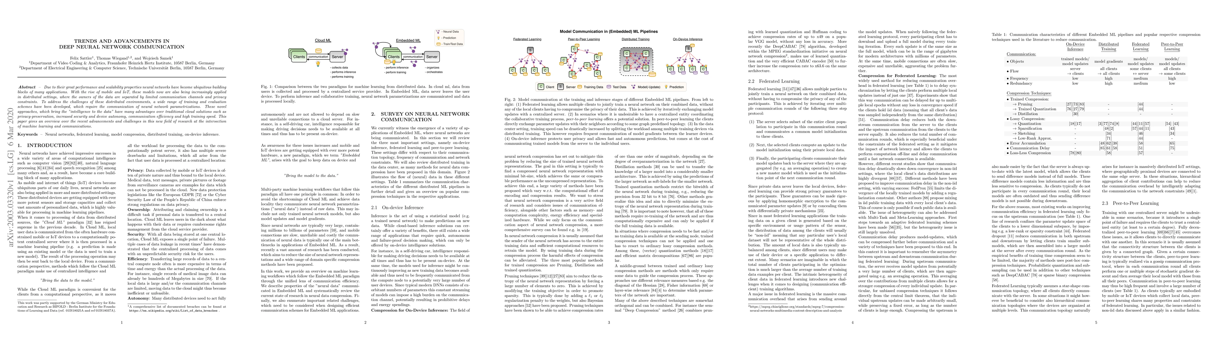 Due to their great performance and scalability properties neural networks have become ubiquitous building blocks of many applications. With the rise of mobile and IoT, these models now are also being increasingly applied in distributed settings, where the owners of the data are separated by limited communication channels and privacy constraints. To address the challenges of these distributed environments, a wide range of training and evaluation schemes have been developed, which require the communication of neural network parametrizations. These novel approaches, which bring the "intelligence to the data" have many advantages over traditional cloud solutions such as privacy-preservation, increased security and device autonomy, communication efficiency and high training speed. This paper gives an overview over the recent advancements and challenges in this new field of research at the intersection of machine learning and communications.