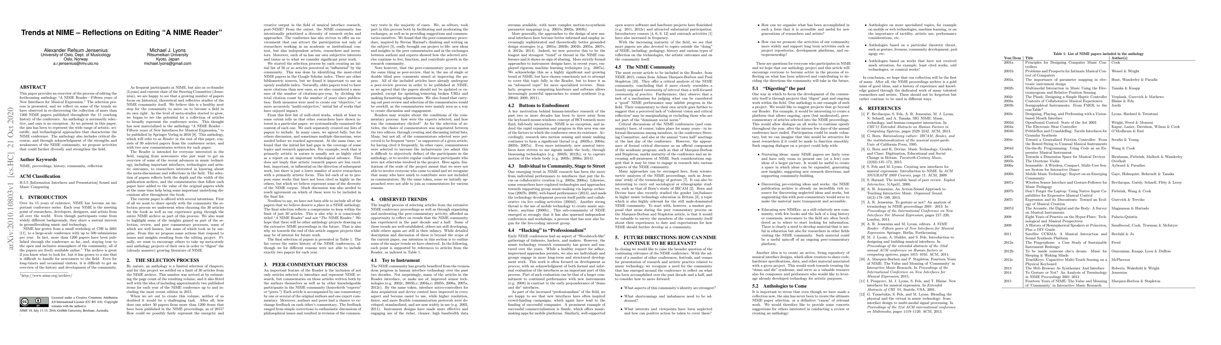 This anthology reflects on 15 years of NIME conference papers, highlighting trends in musical expression and proposing ways to diversify the field. It aims to represent the diverse artistic, scientific, and technological approaches that characterize the community.