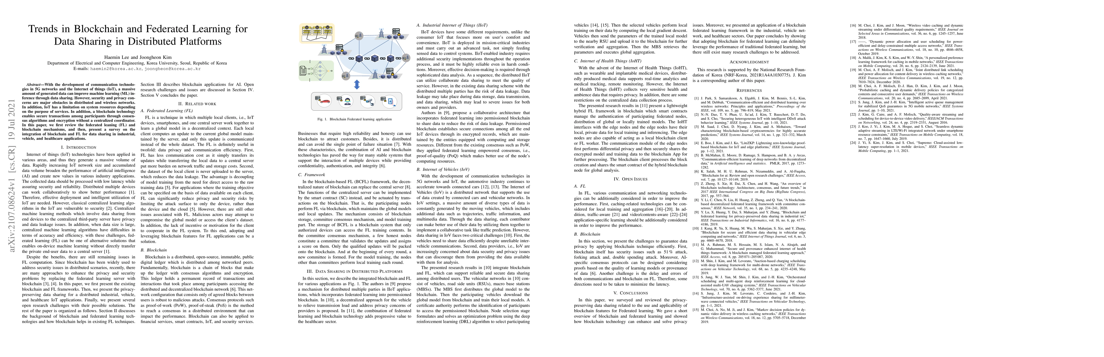 This paper reviews federated learning and blockchain mechanisms, and surveys their integration to enhance secure and private data sharing in distributed platforms, particularly for industrial, vehicle, and healthcare applications amidst resource constraints and security concerns.