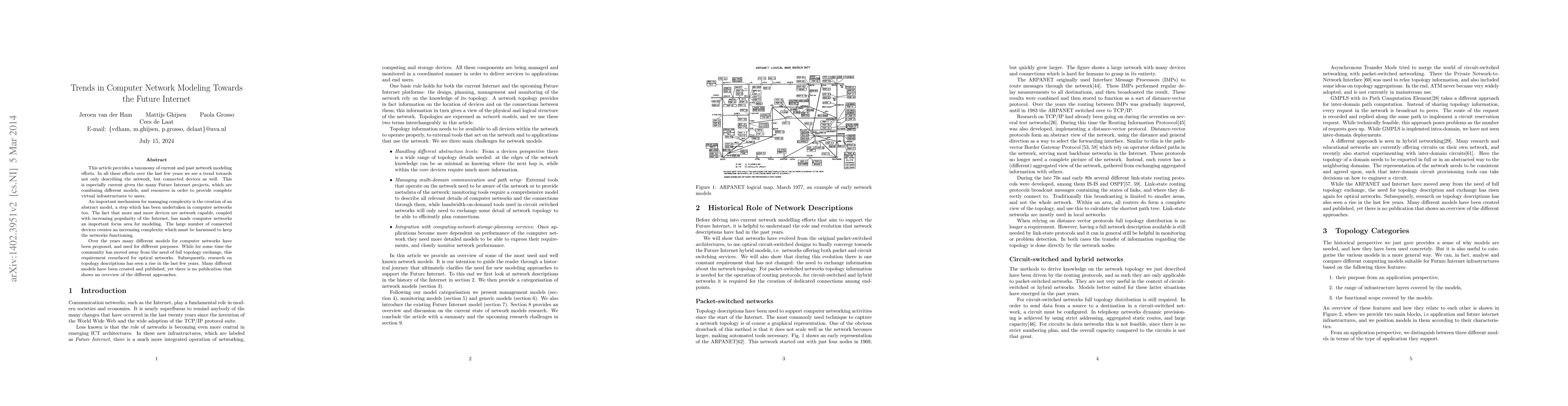 This article provides a taxonomy of current and past network modeling efforts. In all these efforts over the last few years we see a trend towards not only describing the network, but connected devices as well. This is especially current given the many Future Internet projects, which are combining different models, and resources in order to provide complete virtual infrastructures to users. An important mechanism for managing complexity is the creation of an abstract model, a step which has been undertaken in computer networks too. The fact that more and more devices are network capable, coupled with increasing popularity of the Internet, has made computer networks an important focus area for modeling. The large number of connected devices creates an increasing complexity which must be harnessed to keep the networks functioning. Over the years many different models for computer networks have been proposed, and used for different purposes. While for some time the community has moved away from the need of full topology exchange, this requirement resurfaced for optical networks. Subsequently, research on topology descriptions has seen a rise in the last few years. Many different models have been created and published, yet there is no publication that shows an overview of the different approaches.