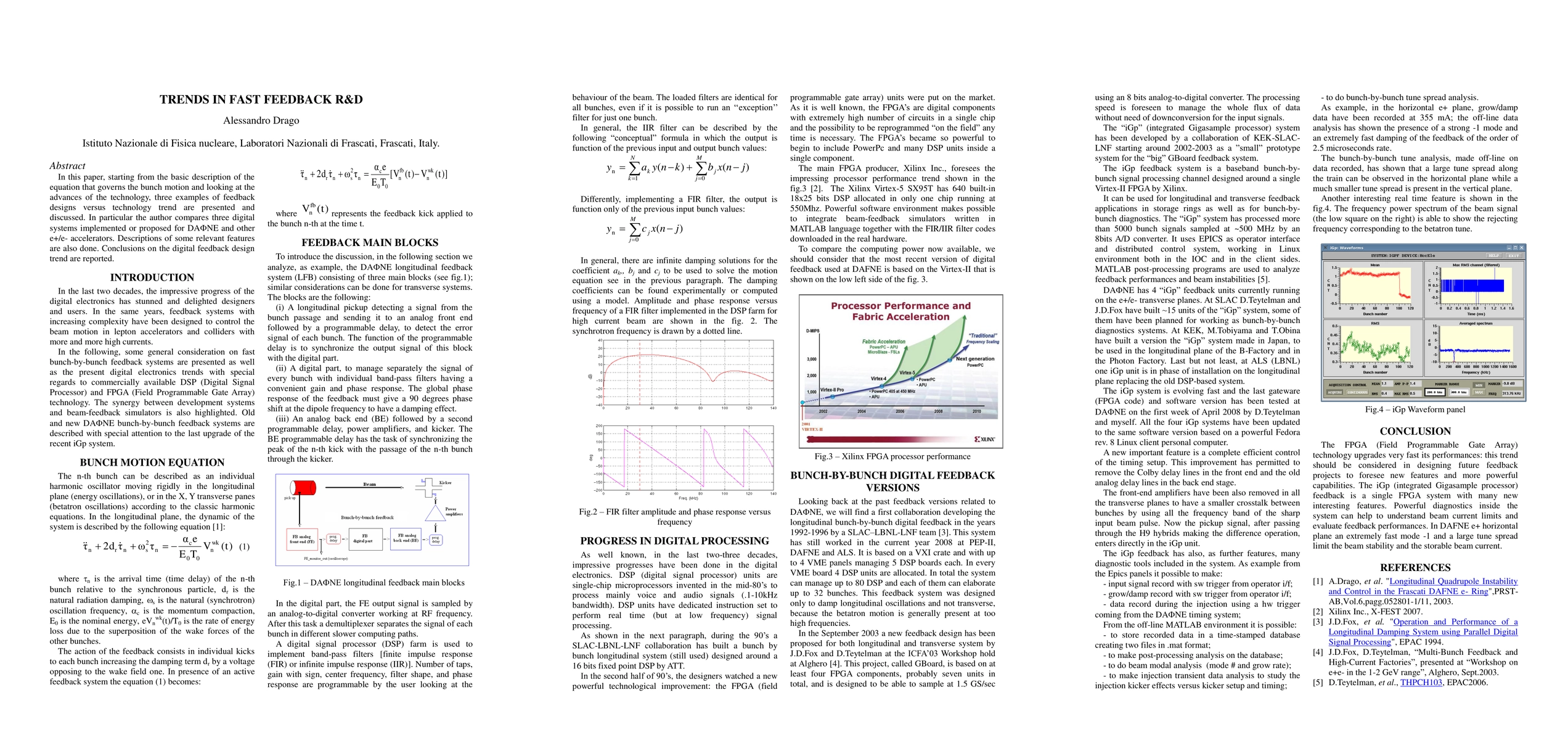 This paper examines the evolution of digital feedback systems in DAFNE and other e+/e- accelerators, analyzing three specific implementations or proposals. It concludes on the current trends in fast feedback R&D, highlighting technological advancements and their implications.