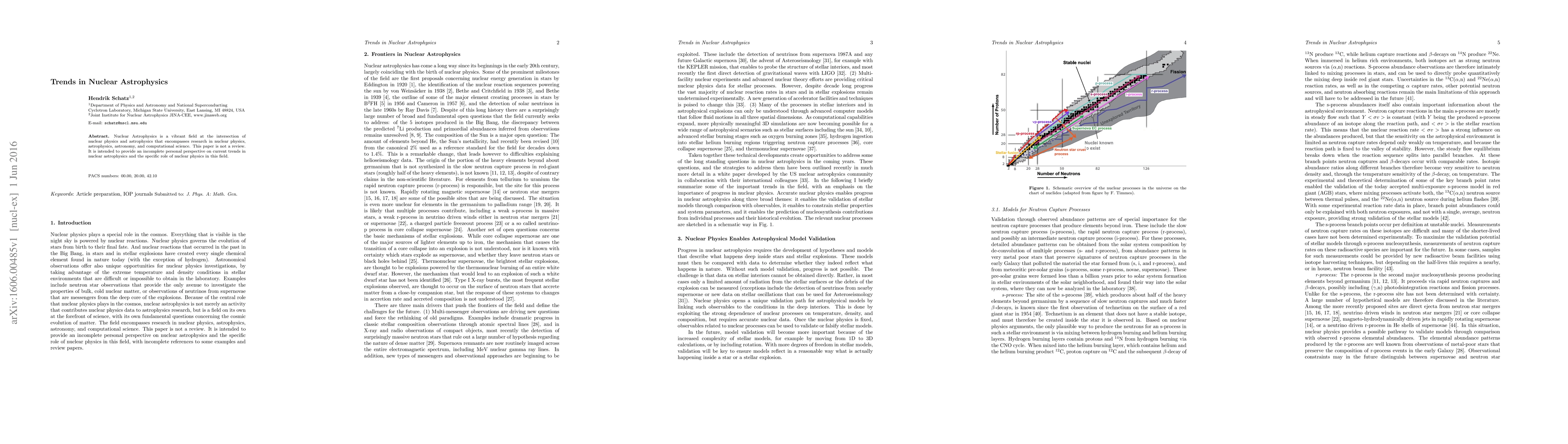 Nuclear Astrophysics is a vibrant field at the intersection of nuclear physics and astrophysics that encompasses research in nuclear physics, astrophysics, astronomy, and computational science. This paper is not a review. It is intended to provide an incomplete personal perspective on current trends in nuclear astrophysics and the specific role of nuclear physics in this field.